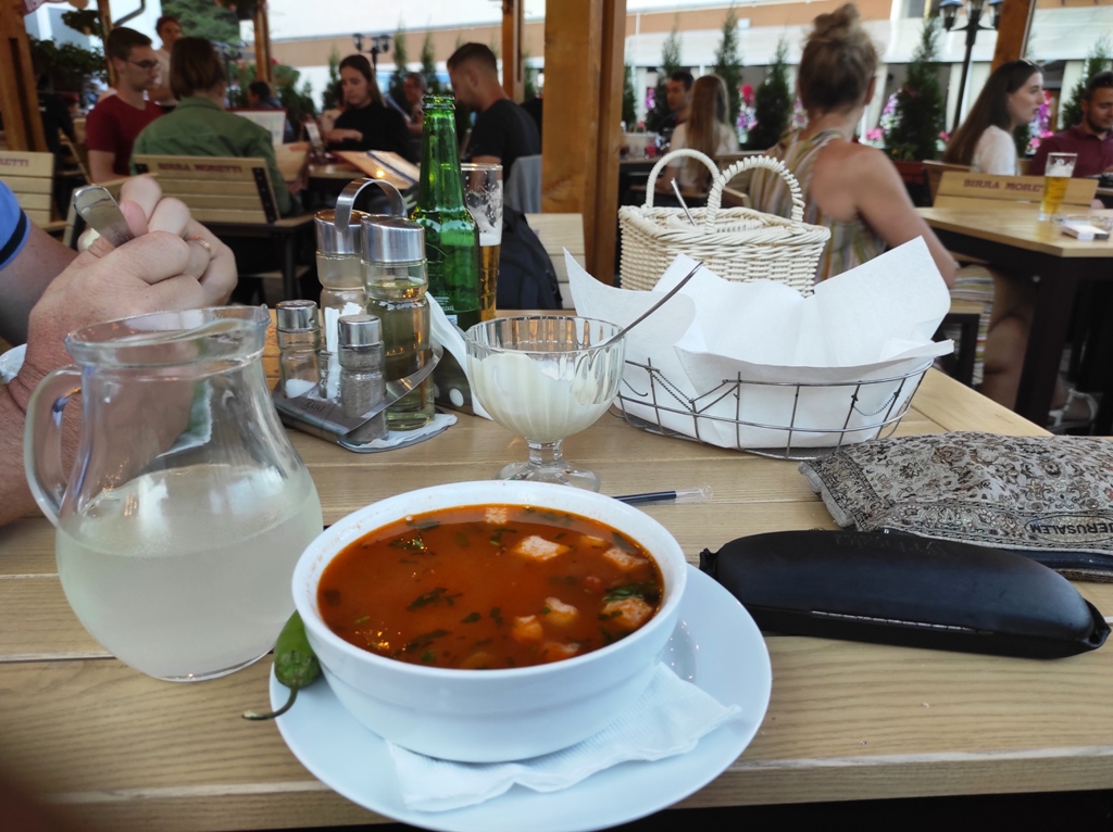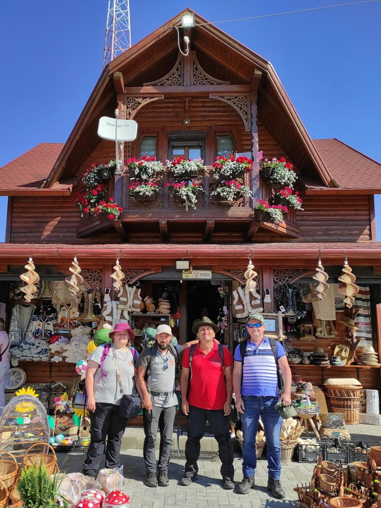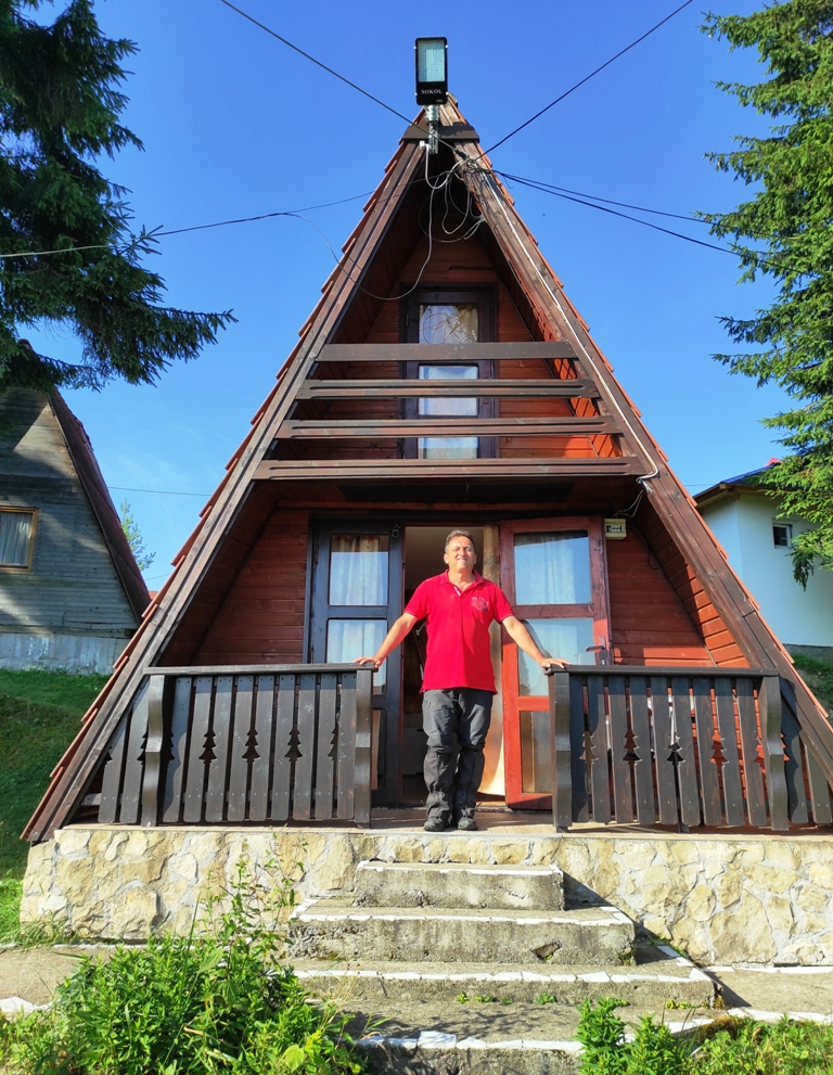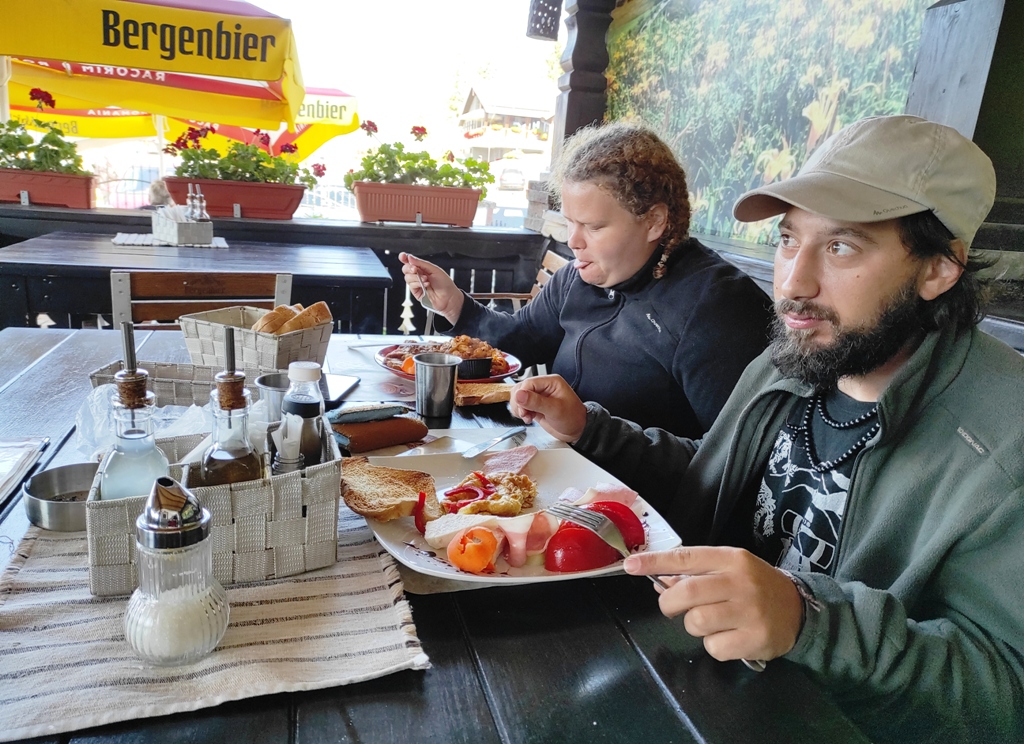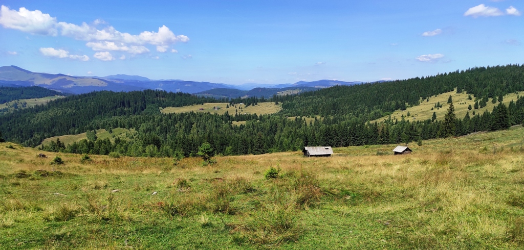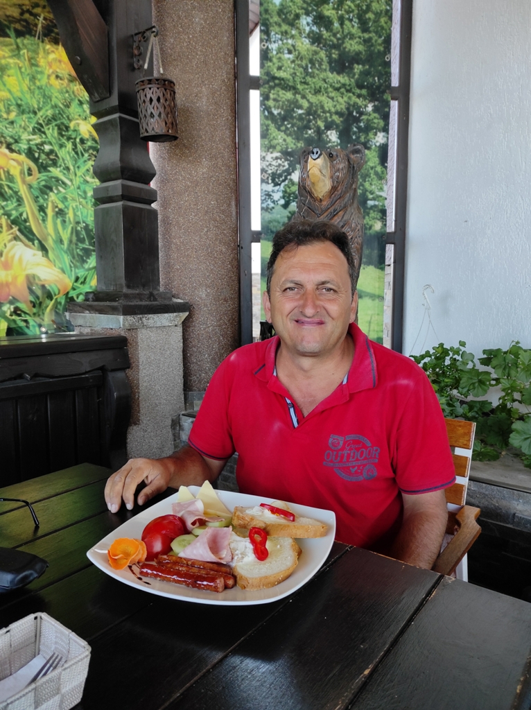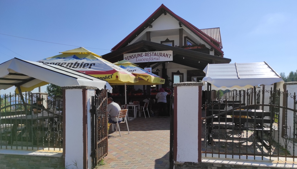 Superbe şi deosebit de confortabile, căsuţele de la Pensiunea Luceafărul din pasul Mestecăniş. Dealtfel şi micul dejun foarte apetisant şi consistent, mai ales că se oferă şi o reducere de zece la sută pentru toţi clienţii Via Transilvanica. Noi, condimentăm bunătăţile oferite şi cu câte o cafeluţă servită elegant de frumoasele ospătăriţe, apoi după ce admirăm ce e frumos, ne facem curaj şi plecăm dar nu înainte de a face şi tradiţionala poză de grup. Suntem tot patru, dar mai spre seară rămânem doi, Monica și Mihai merg într-o altă direcție, au fost o companie tare plăcută, mulțumiri!