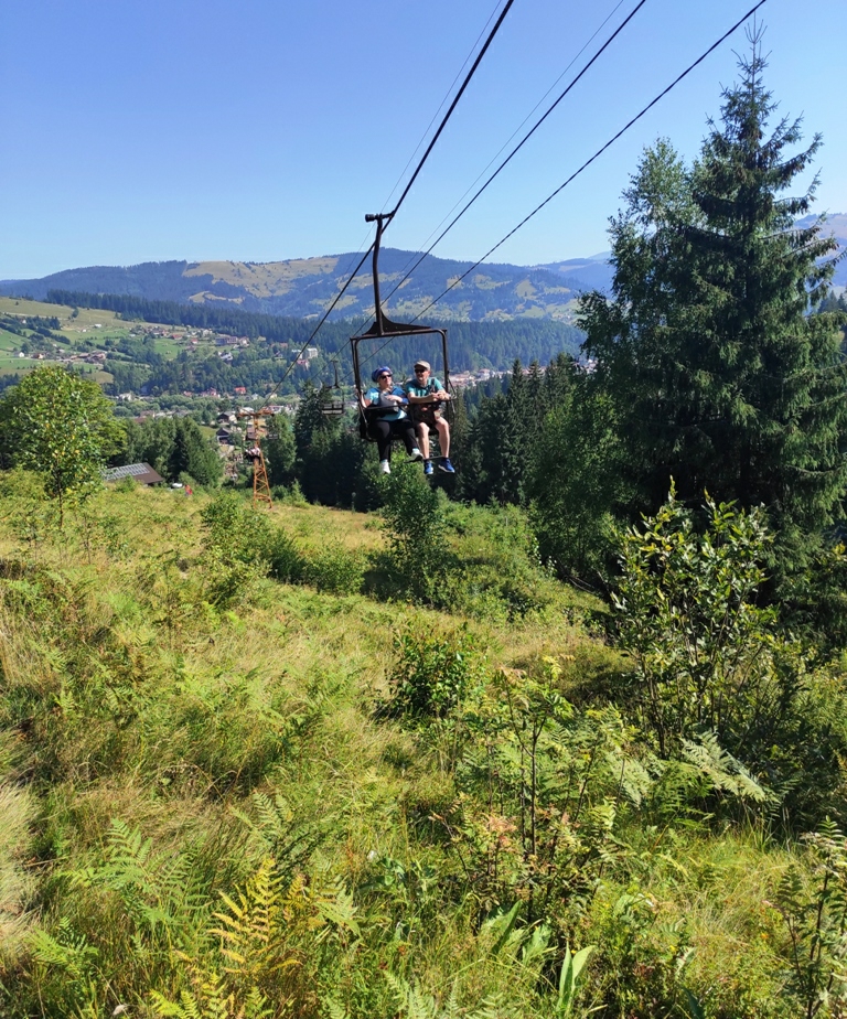 Lăsăm în urmă frumoasa staţiune și mergem după cum ne-a fost vorba, pe jos, pe sub instalația de telescaun de ne iese sufletul din noi la propriu, dar ni se mai taie şi respiraţia de tot, când, după ce urcăm panta, privim în zare şi descoperim peisajele de vis de deasupra depresiunii Dornelor.