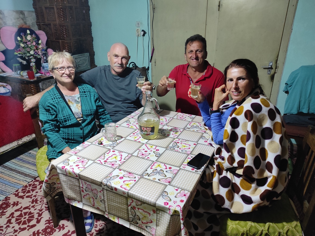 Acum cu unguroaice sau fără, ajungem la doamna Magdalena și domnul Tibi, gazdele noastre primitoare de la Jeica, care ne oferă mâncare multă și bună, jin ars, eu îi zic pălincă, vin alb de la mama lui și vorbim și glumim și ne întindem și povestim câte în lună și în stele și timpul trece și râdem și iar râdem…și ce frumos e când rămâi cu amintiri frumoase!