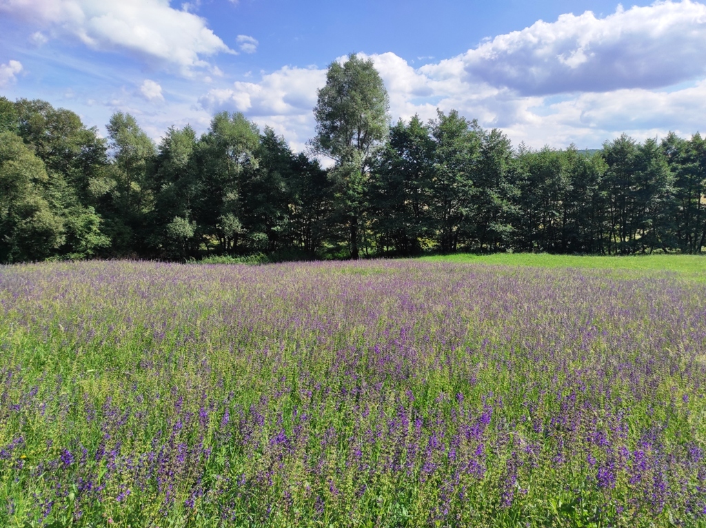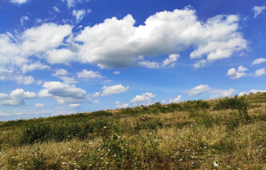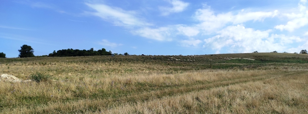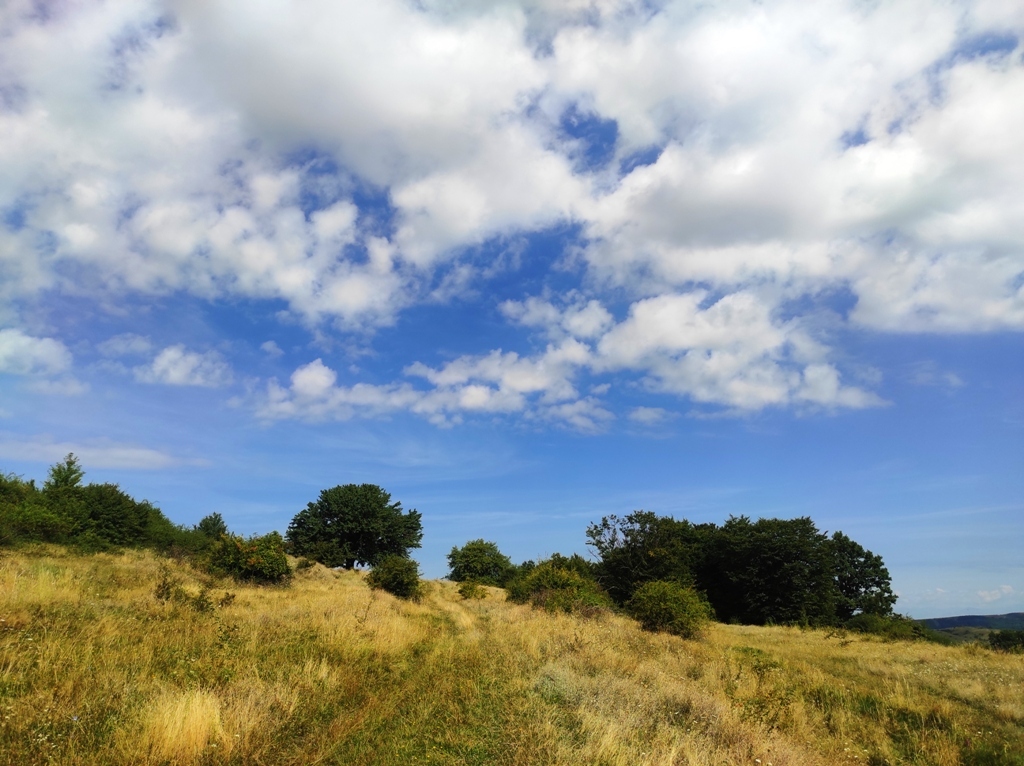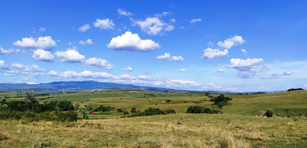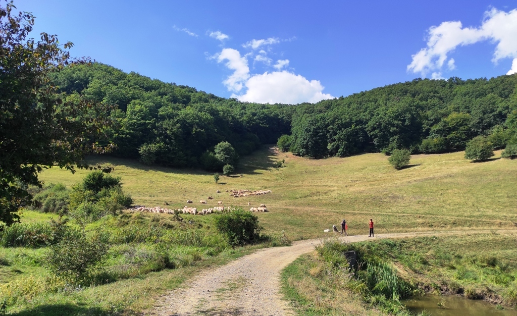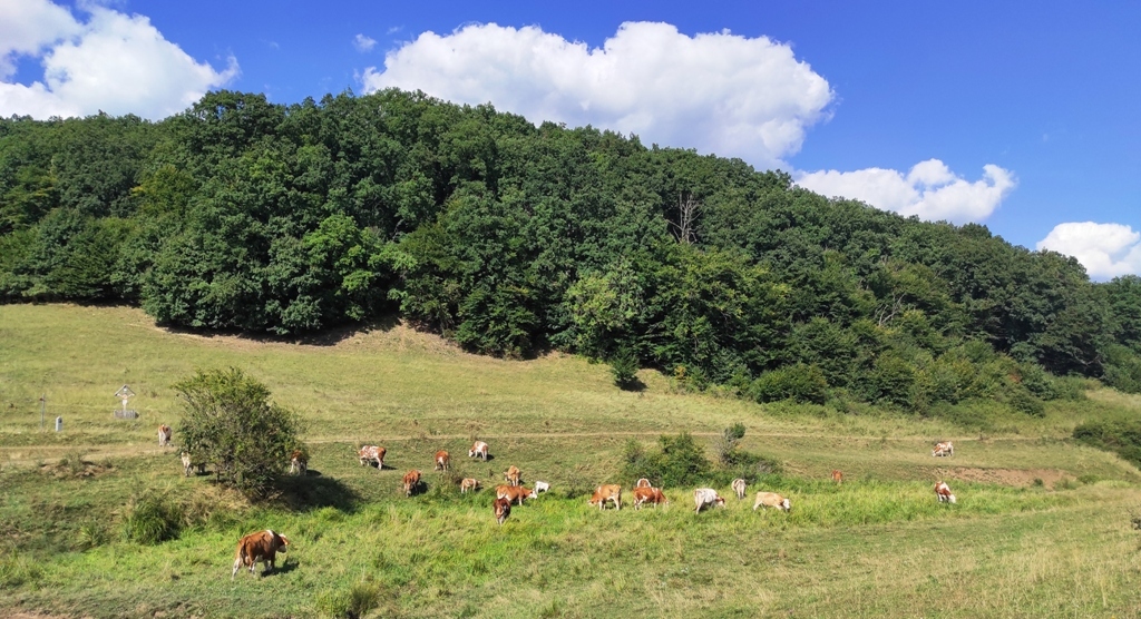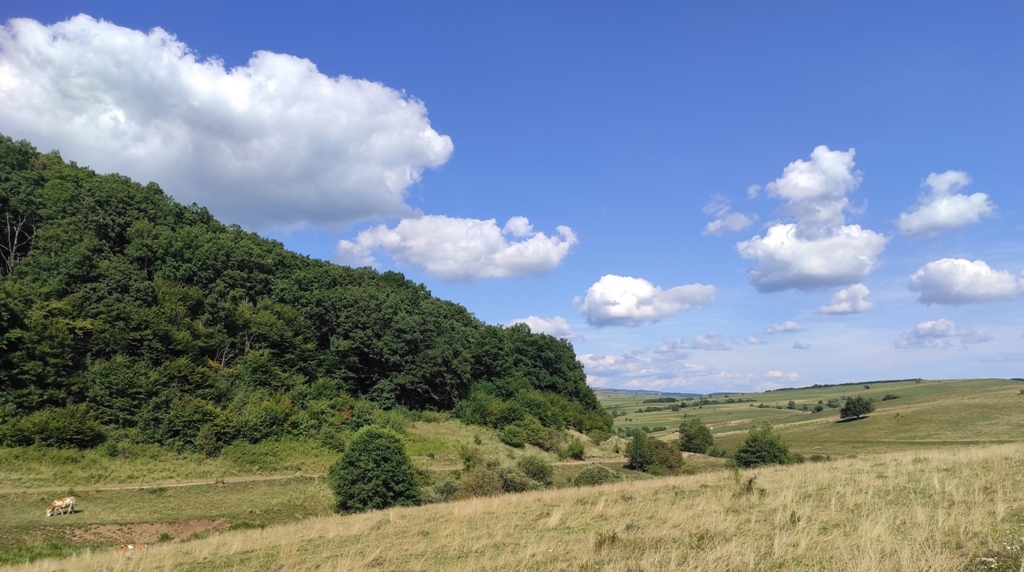 În rest, vreme frumoasă, cărare faină, am reușit să mă și rătăcesc puțin în poiana din vârful dealului, unde poteca se pierde prin iarbă, iar câinii sunt în drum și de abia așteaptă să te observe, vacile sunt în stânga și poate că și ele au câini, și cu toată experiența mea de munțoman, sunt nevoit să folosesc pentru prima oară telefonul pentru a ieși din impas şi nu îmi strică deloc aplicaţia cu care mă şi împrietenesc rapid.
