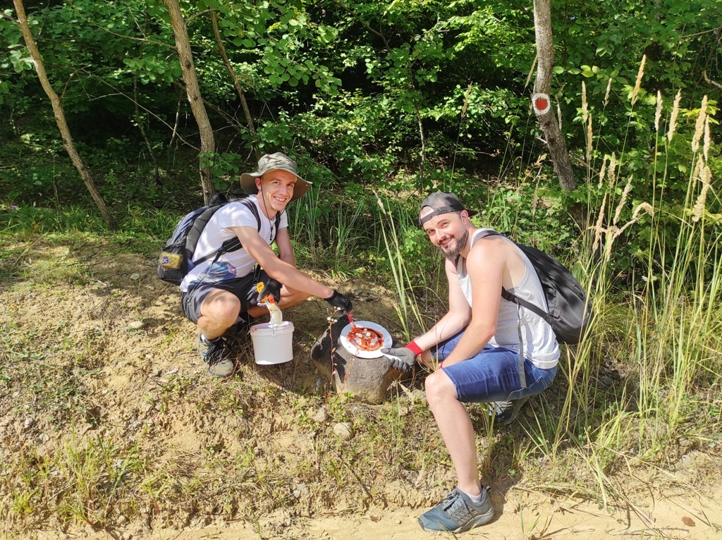 Întâlnesc apoi și pe David și Raul, care lucrează la marcaje, ei sunt și părinți de borne, și eu vreau să înfiez pe viitor câteva. Apoi continui în linie dreaptă traseul că nu mai am mult până ajung.