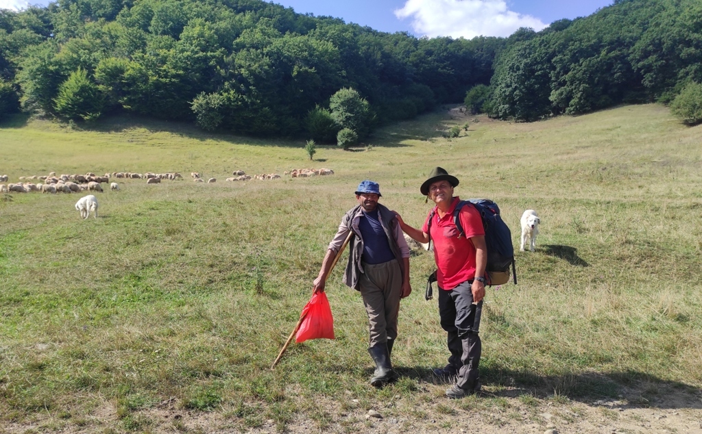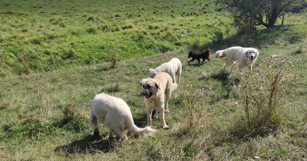 Ajung și la ei, pe bună dreptate frumoși câini, bine hrăniți, ciobănești adevărați, mândria țării, acum e adevărat că dacă își puneau mintea cu mine nu mă prea vedeam bine…dar e nea Cornel acolo care după ce ne face cunoştinţă, îmi cere și niște apă de băut, şi îi dau, că presupun că dacă nu apăream eu prin preajmă murea pesemne omul de sete.