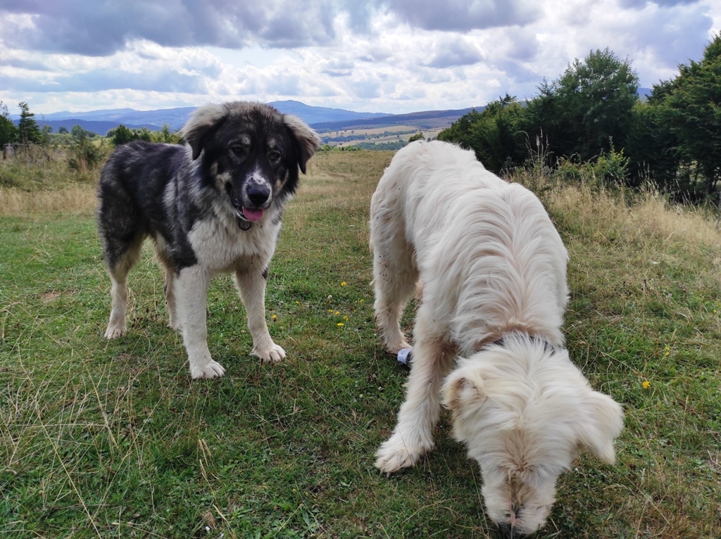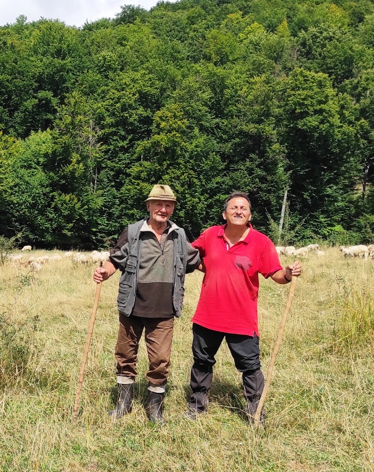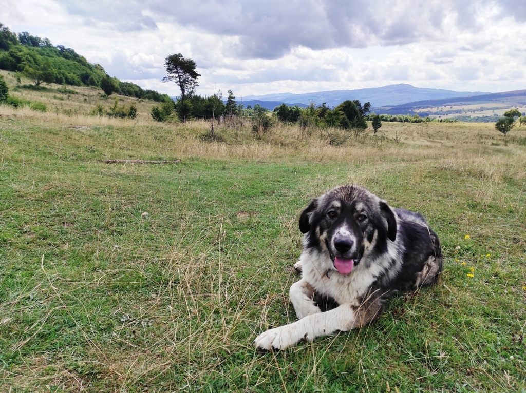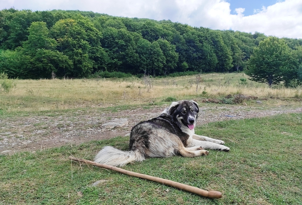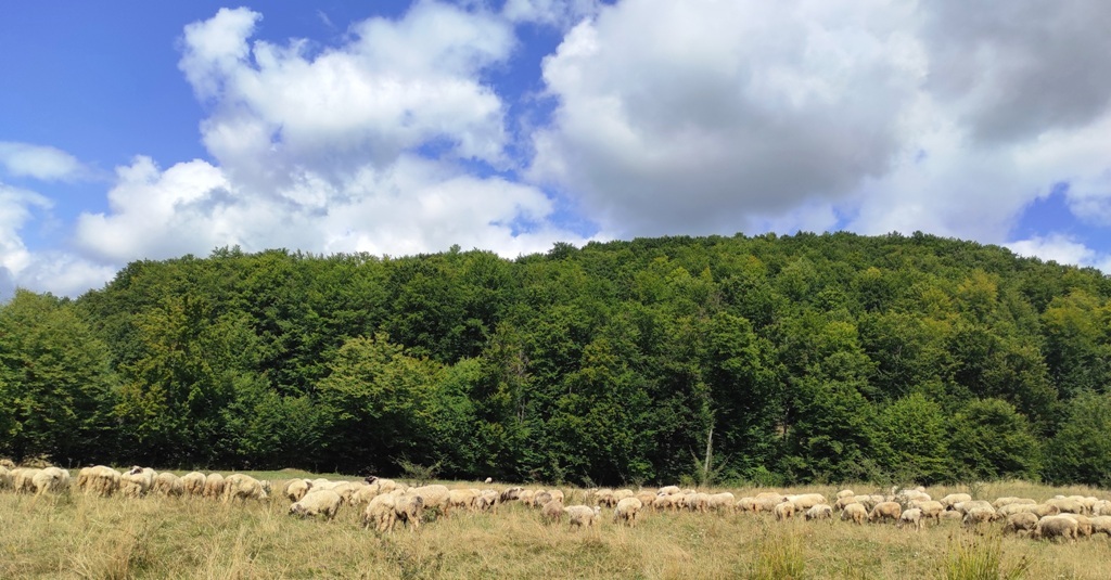 Pornesc, totuși la drum pe o vreme superbă și nici o urmă de urs, nici măcar cât ai face o poză… în schimb îmi amintesc că astăzi este Ziua Câinelui și fac cumva să nu le stric petrecerea când mă apropii prea mult de ei. Ocolesc stânele cât pot de mult, dar până la urmă tot dau nas în nas cu ditamai turma de oi și cu niște câini sărbătoriţi. Dar acolo este nea Iosif, un cioban de vreo 74 de ani care spune că are 8 copii, 4 fete și 4 băieți și că toți sunt la casele lor răspândiţi prin toată lumea. Ajutorul său este Zoli, mult mai tânăr, care nu știe românește deloc.