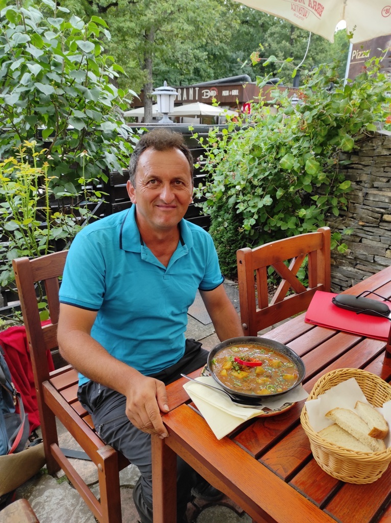 Găsesc totuşi un restaurant unde mă recompensez cu un gulaş unguresc foarte gustos şi frumos ornat de ospătar, și cum domnul face asta special ca să mă impresioneze chiar reuşeşte să obţină şi un mic ciubuc din partea mea deşi de firea mea sunt foarte zgârcit.