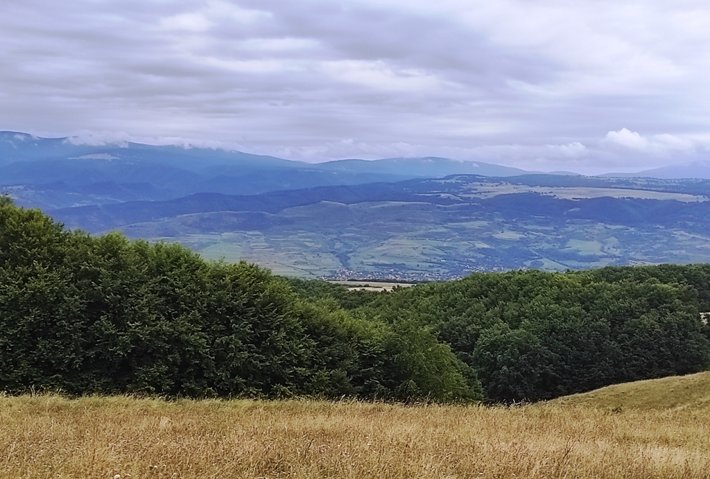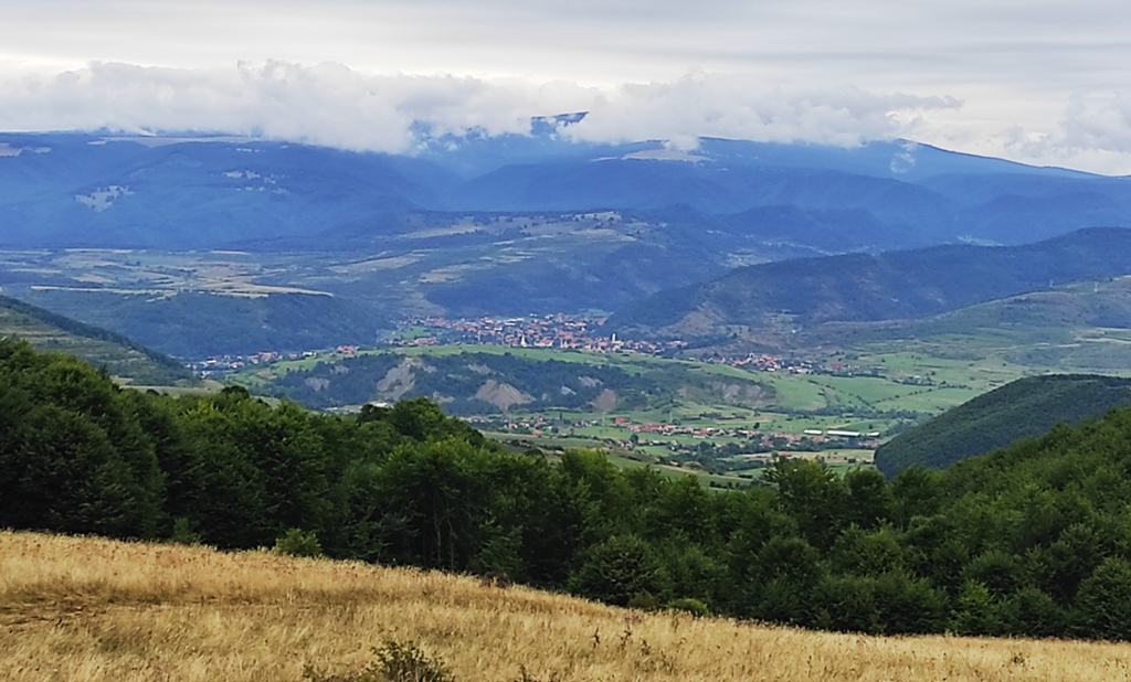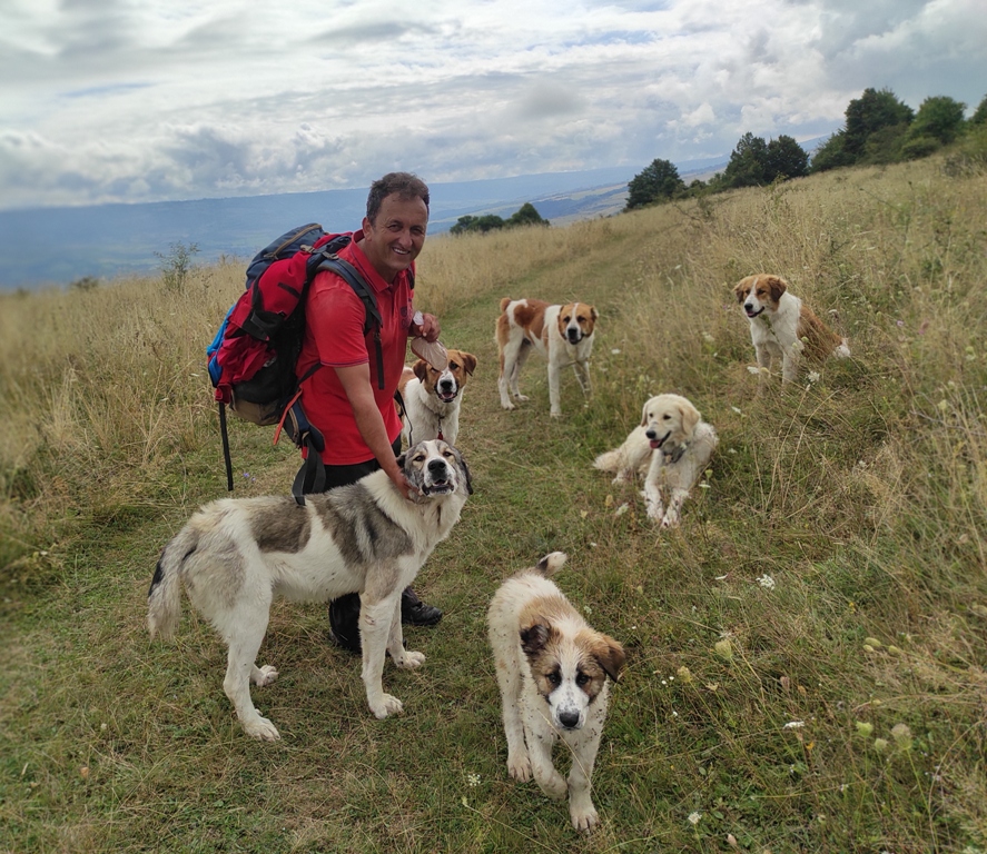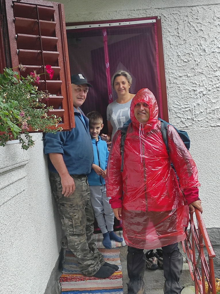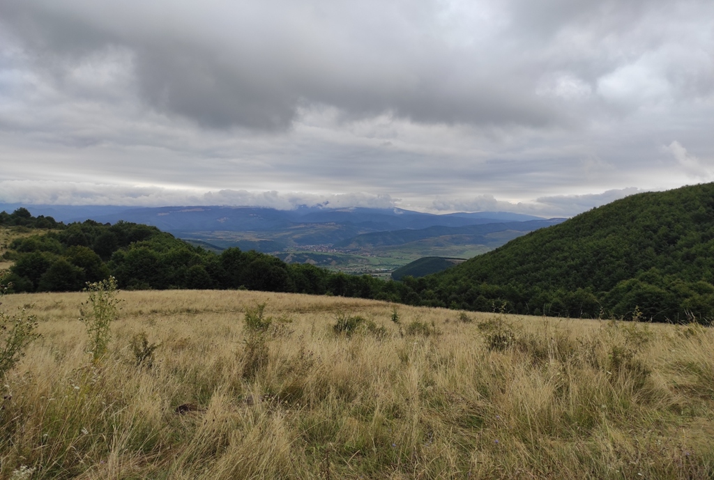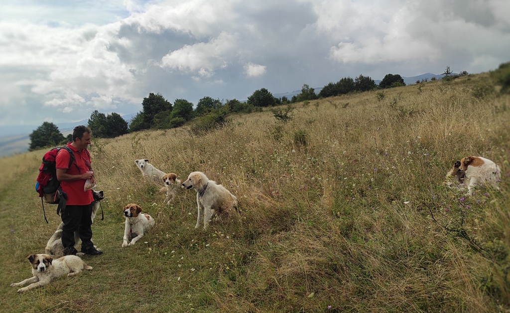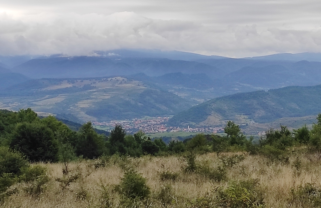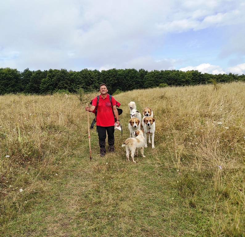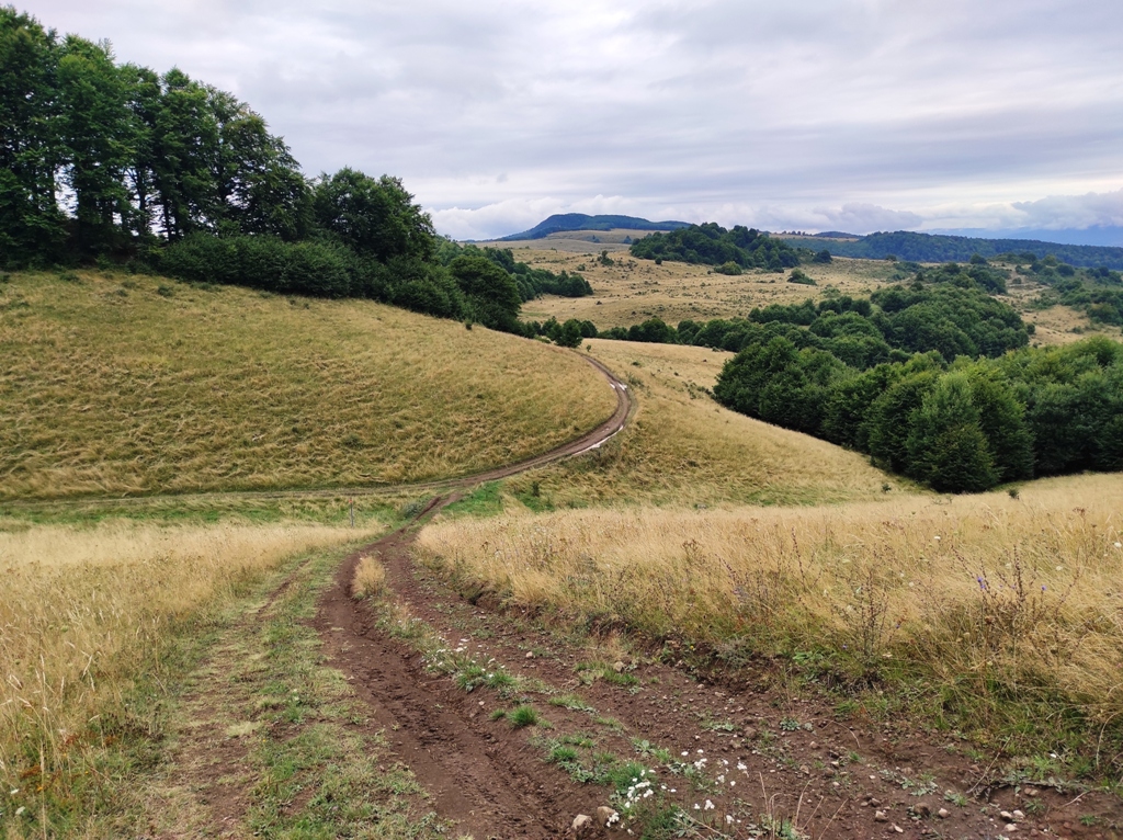 Greu mi-a mai fost să mă despart de această comunitate de vâlcenii, dar până la urmă tot a trebuit să o fac şi să pornesc prin pădurea deasă plină de urși, cum se spune mereu pe aici, dar tot ajung până la urmă la o turmă de oi iar traseul Via Transilvanica trece exact prin mijlocul lor. Dintr-o mă pomenesc cu vreo 16 patrupezi unul mai frumos decât celălalt care năvălesc asupra mea să mă rupă nu altceva, dar ei desigur că încearcă să-și apere suratele oi și capre de intrus, adică de mine, şi aproape că reuşesc să o şi facă, dar noroc că în ultima clipă apare un ciobănaș tinerel pe care îl cheamă Iulian ce provine de prin judetul Bacău, și care și-a găsit o fată bună în Harghita și s-a mutat la ea. Spune că acolo în Bacău, nu sunt fete așa harnice ca aici, și că acelea care sunt, stă numai cu ochii în oglindă și au unghiile făcute..