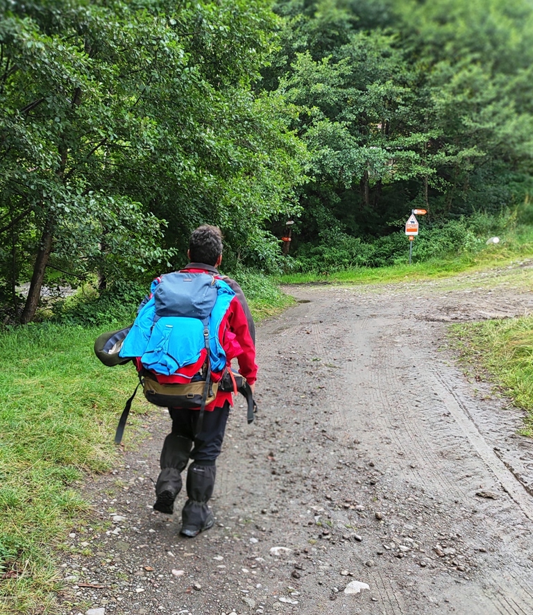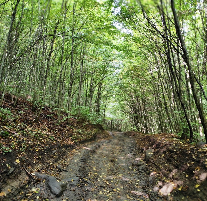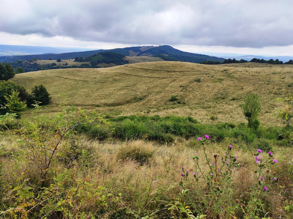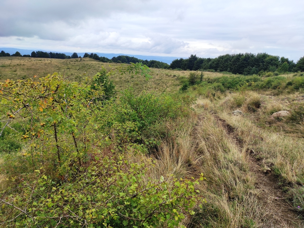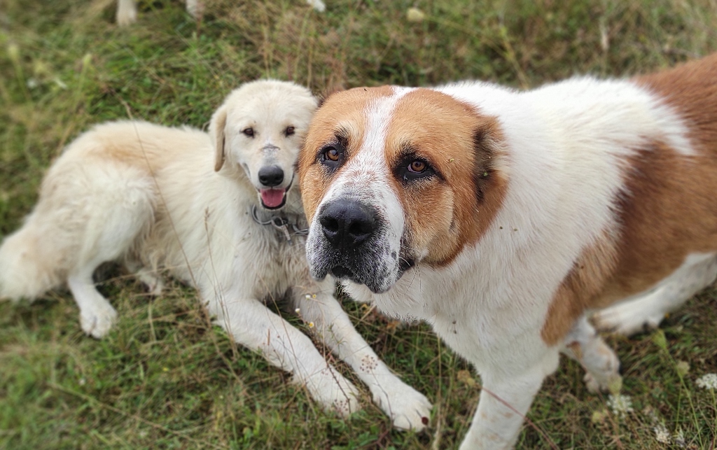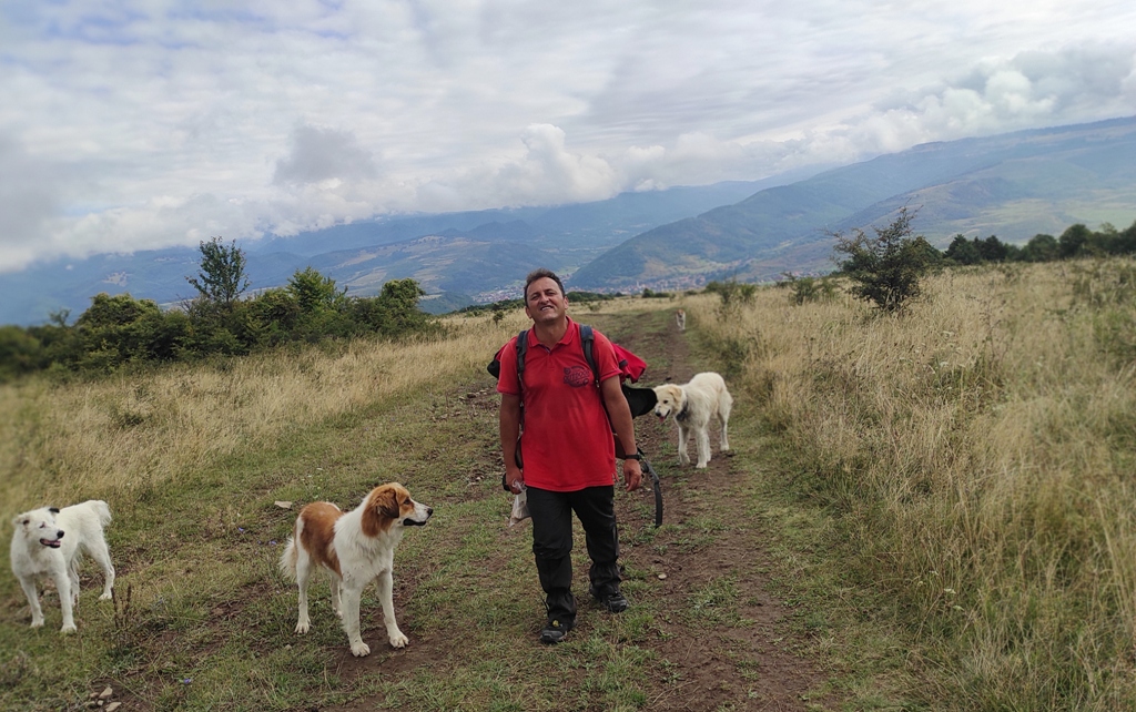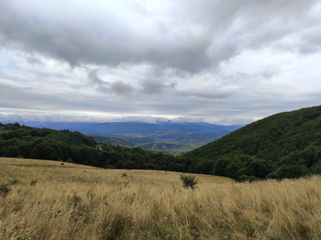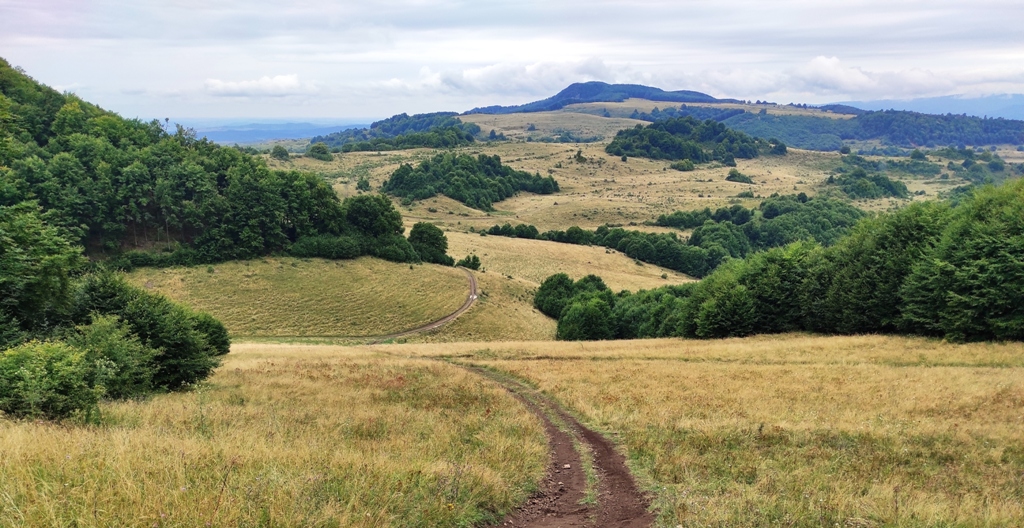 Greu mi-a mai fost să mă despart de această comunitate de vâlcenii, dar până la urmă tot a trebuit să o fac şi să pornesc prin pădurea deasă plină de urși, cum se spune mereu pe aici, dar tot ajung până la urmă la o turmă de oi iar traseul Via Transilvanica trece exact prin mijlocul lor. Dintr-o mă pomenesc cu vreo 16 patrupezi unul mai frumos decât celălalt care năvălesc asupra mea să mă rupă nu altceva, dar ei desigur că încearcă să-și apere suratele oi și capre de intrus, adică de mine, şi aproape că reuşesc să o şi facă, dar noroc că în ultima clipă apare un ciobănaș tinerel pe care îl cheamă Iulian ce provine de prin judetul Bacău, și care și-a găsit o fată bună în Harghita și s-a mutat la ea. Spune că acolo în Bacău, nu sunt fete așa harnice ca aici, și că acelea care sunt, stă numai cu ochii în oglindă și au unghiile făcute..