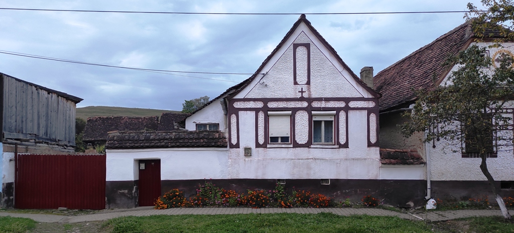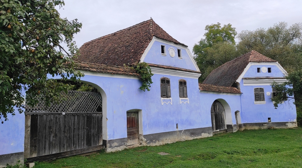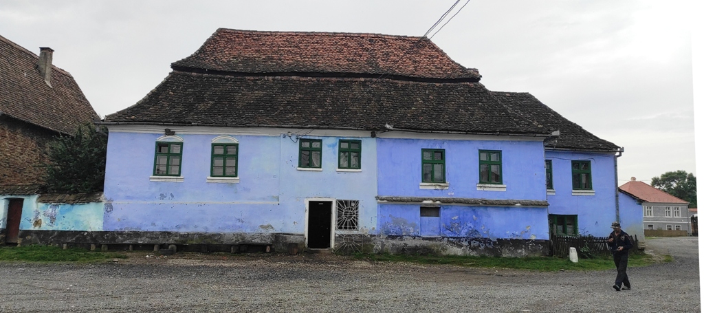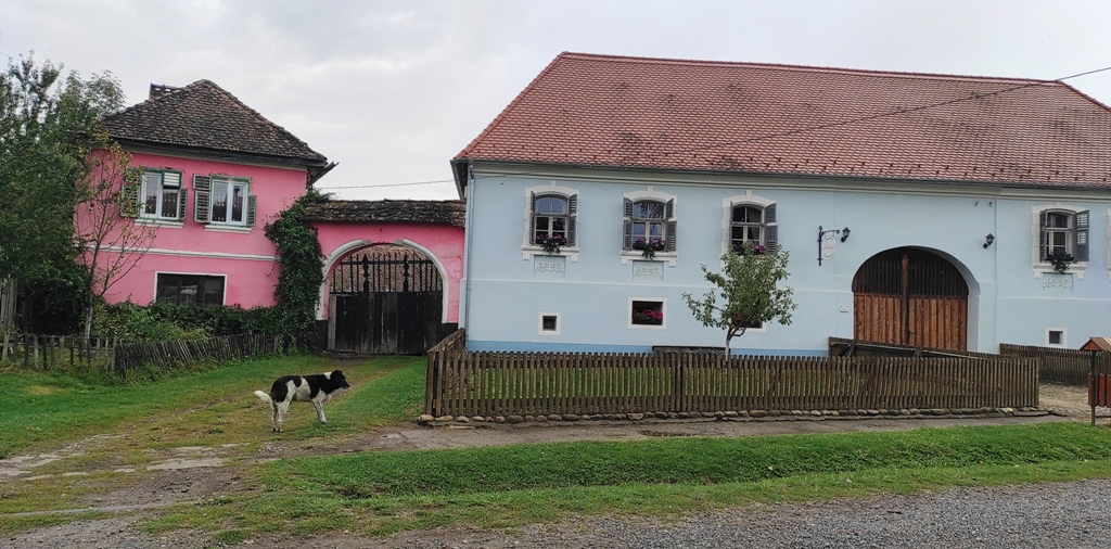 După ce am dormit ca un prinț în camera de oaspeți a locuinței personale, azi dimineață m-am delectat și am savurat delicioasa omletă cu trufe, specialitatea casei, numai aici există așa ceva. Apoi, poza de rămas bun și.. predarea ștafetei. Nea Gheorghe, român adevărat a ținut să-mi reamintească că Terra Siculurum a rămas în urmă și că de aici în colo sunt pe Terra Saxonum, și bineînțeles că starea de fapt a şi fost imortalizată printr-un moment artistic drăguţ, că nu se putea altfel.