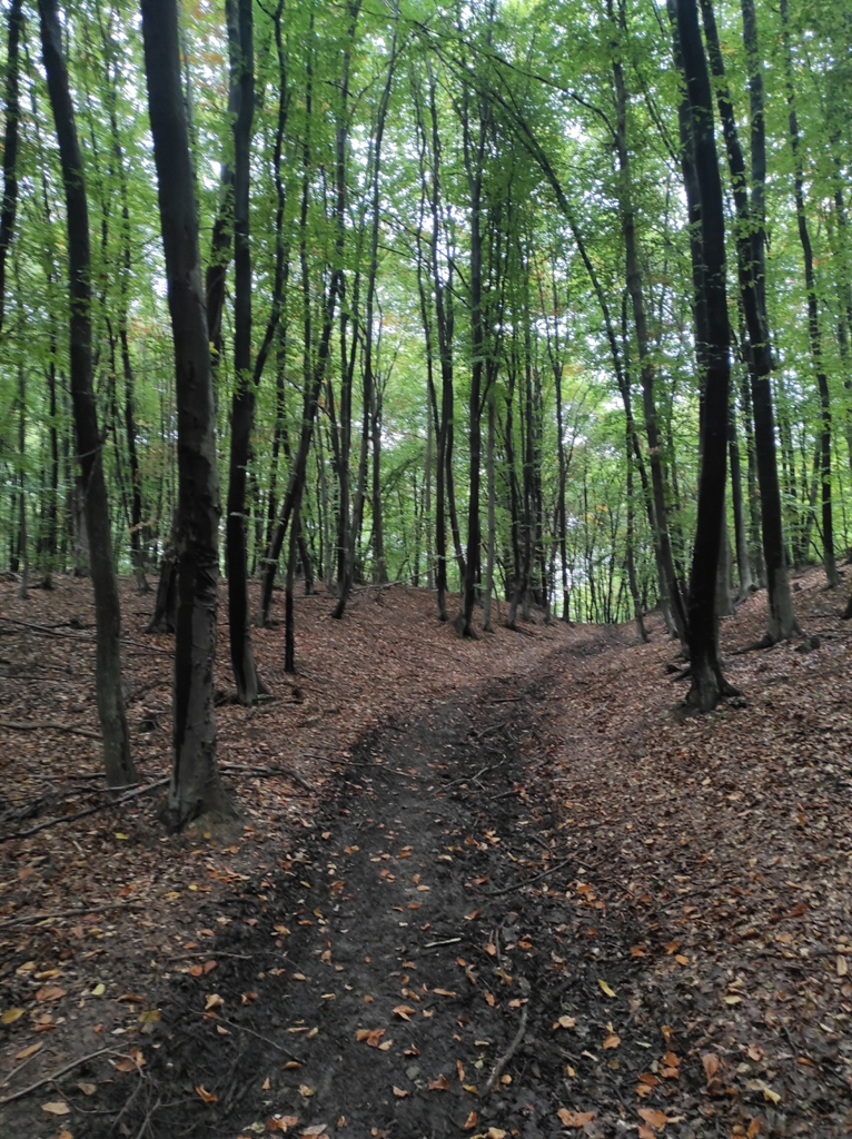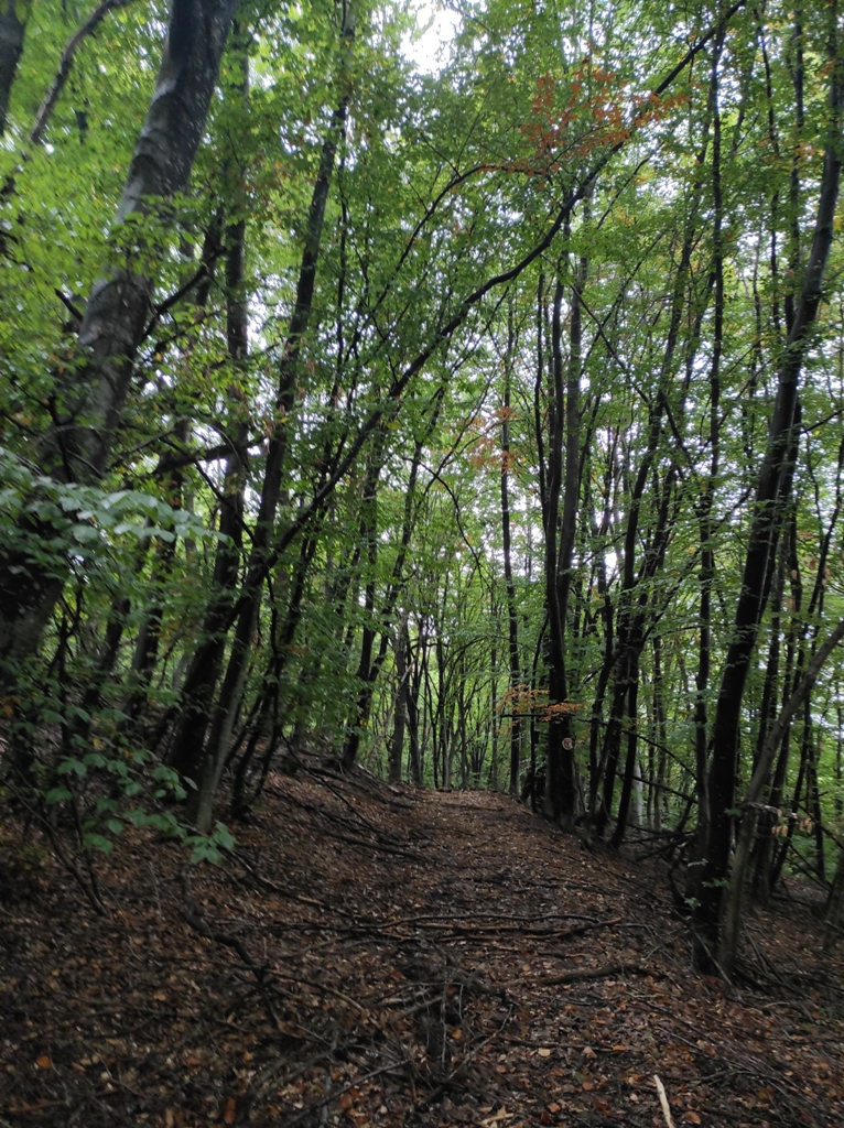 Colac peste pupăză, intru într-o pădure așa de fioroasa încât cred că întâlnirea cu el e inevitabilă. Mă pregătesc de o trântă cu Ursul Carpatin cel cu guler alb la gât, dar nu vine și scapă de data aceasta. Dar poate are și el familie, văd multe urme, pierd traseul îl găsesc cu greu, simt miros de urs, aud zgomote, dar până la urmă nimic, asta e, mergem mai departe, fiecare cu ale lui.