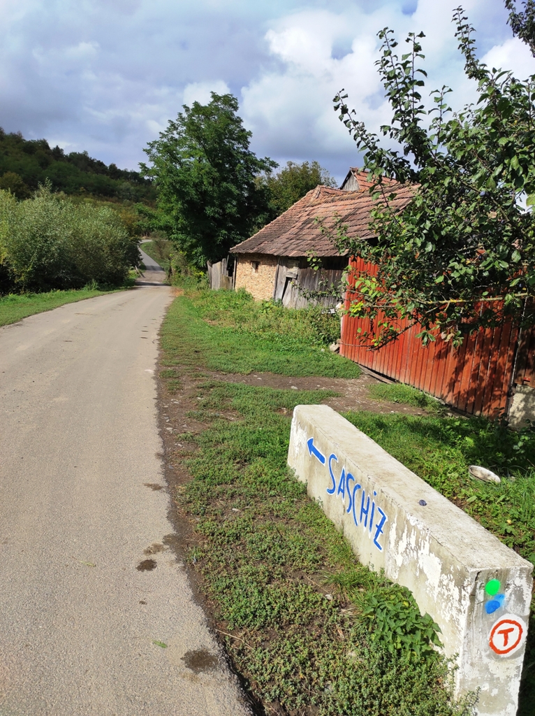 Deși Saschiz-ul nu este foarte departe, traseul meu mă duce pe coline, pe la câinii cei răi, dar care sunt parfum pe lângă cei întâlniți în alte locuri prin care am trecut. Pe aceștia de aici cu două-trei bucățele de pâine îi păcăleşti imediat.
