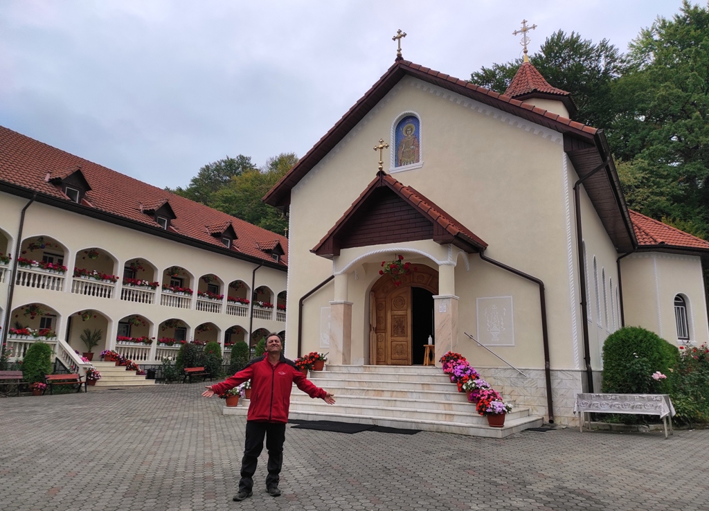 Am ajuns destul de repede la Aurel Vlaicu, unde am descoperit o mănăstire așa plină de flori cum nu am văzut în viața mea. L-am cunoscut și pe părintele Macarie care îmi spune că a făcut seminarul la Râmnicu Vâlcea și imediat descoperim și cunoștințe comune.