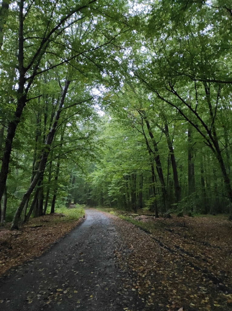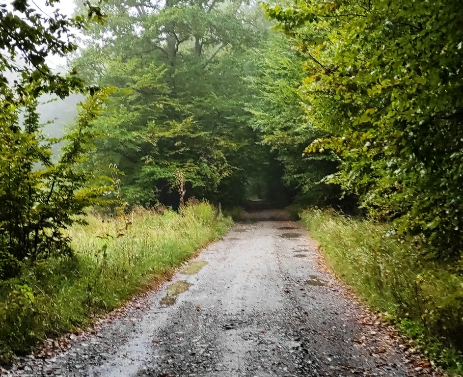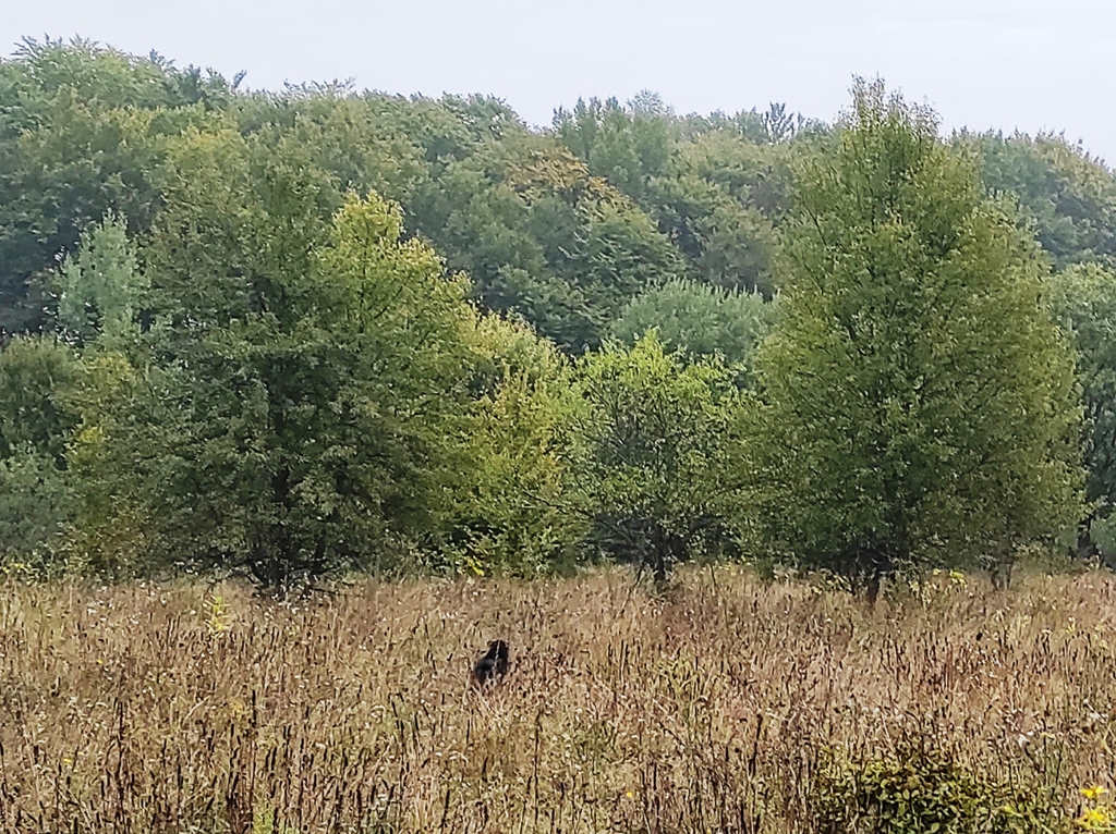 Grăbesc pasul pentru că risc sa mă prindă noaptea, și întâlnesc prin pădurile aproape fantomatice, doi câini vagabonzi, care aproape mor de spaimă când dau cu ochii de mine. În schimb la cât de întunecată pare pădurea și din cauza ploii continue, cu greu reușesc eu să-mi stăpânesc frica de urs pe care mi se pare că îl și observ de câteva ori, dar din fericire nu sunt decât niște buturugi de copaci.