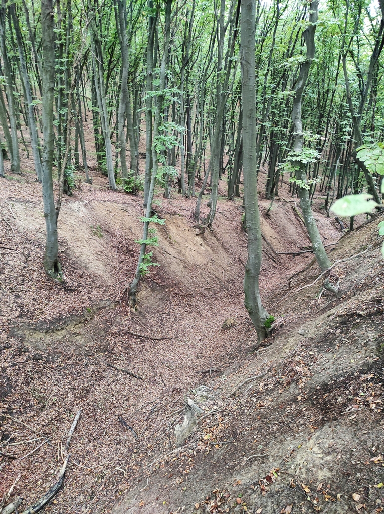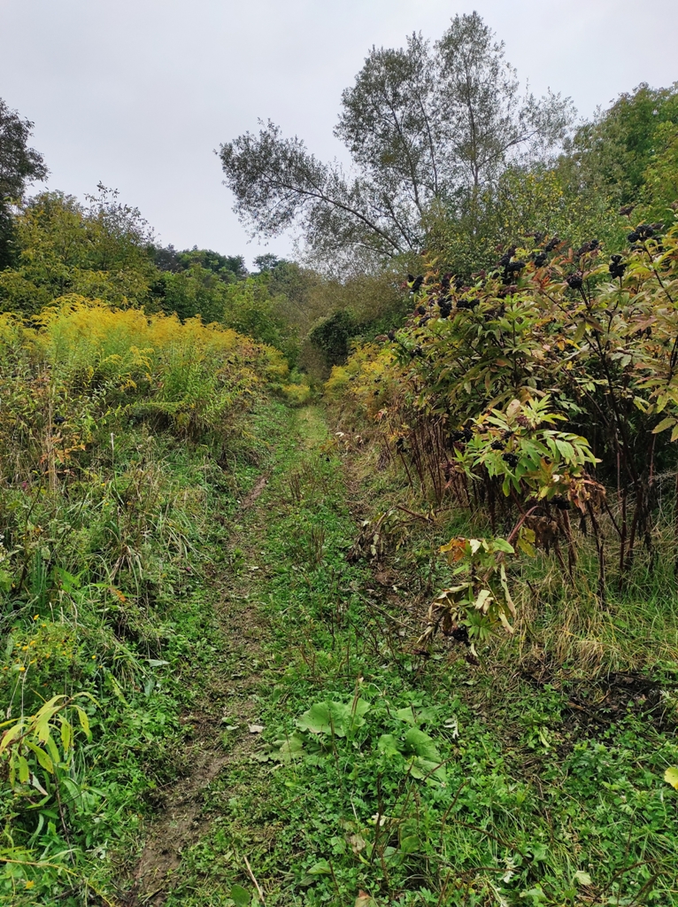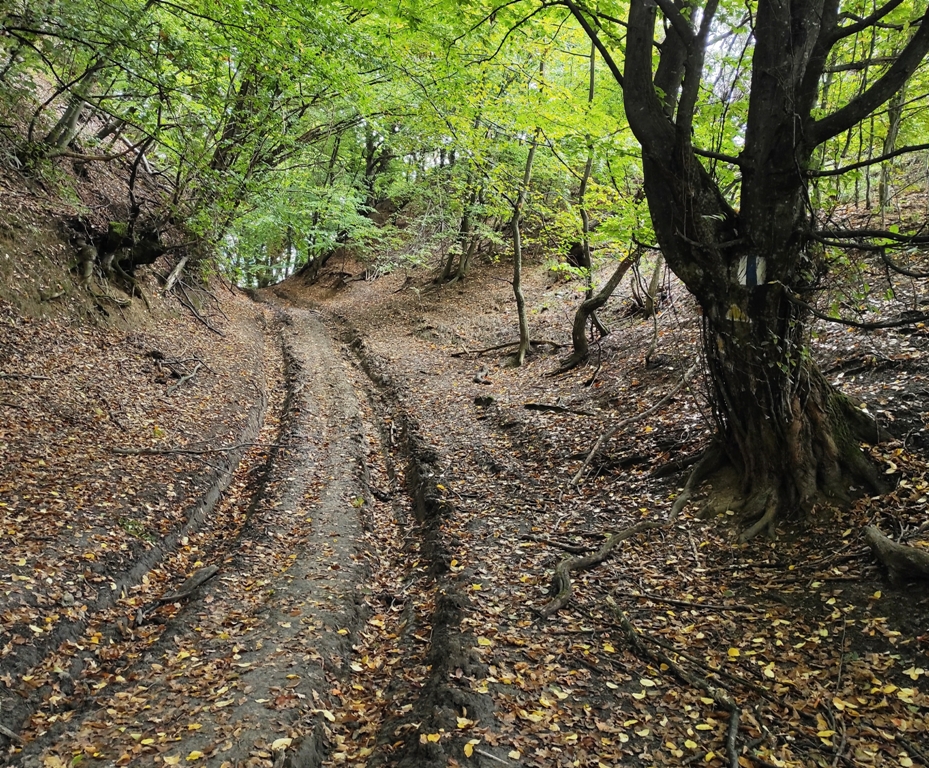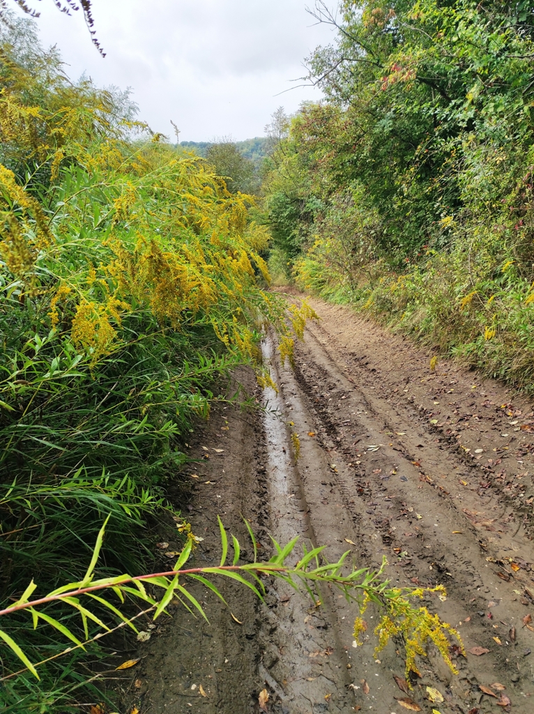 Cu uitătură cu tot, prietenul patruped pleacă la ale sale iar eu merg mai departe și dintr-o dată mă pomenesc într-un fel de junglă cu atâta vegetație, rugi și hududoaie de unde doar cu eforturi fantastice reușesc să ies, și apoi în sfârșit ajung pe traseu dar cu prețul că sunt ud fleașcă dar și plin de noroi. Dar nu-i bai!