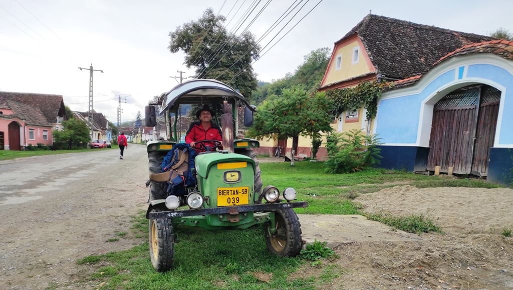 La Copșa Mare îl cunosc pe nea Ghiță Bogdan, cu care mă împrietenesc așa de tare încât facem și schimb de telefoane și mă așteaptă data viitoare să vin să mă găzduiască. Mă urc și în tractorul din sat cu bagaj cu tot, dar cobor pentru că știu că urmează în continuare o pantă mai abruptă și e mai ușor pe jos.