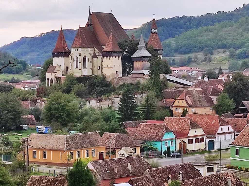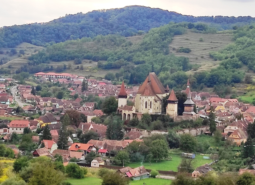 Și, în sfârșit, după o plimbărică romantică printre coline ajung deasupra Biertan-lui, şi am parte de una dintre cele mai frumoase priveliști din câte mi-a fost dat să văd vreodată, un castel desprins parcă din lumea poveştilor, iar eu mă gândesc că acolo sus la geamul celui mai înalt turn, sigur se află Ileana Cosânzeana care încă mai aşteaptă să fie salvată de un Făt Frumos ce numai apare! E de-a dreptul uluitor ce am în fața mea, apoi şi casele din localitate sunt la fel de fascinante.