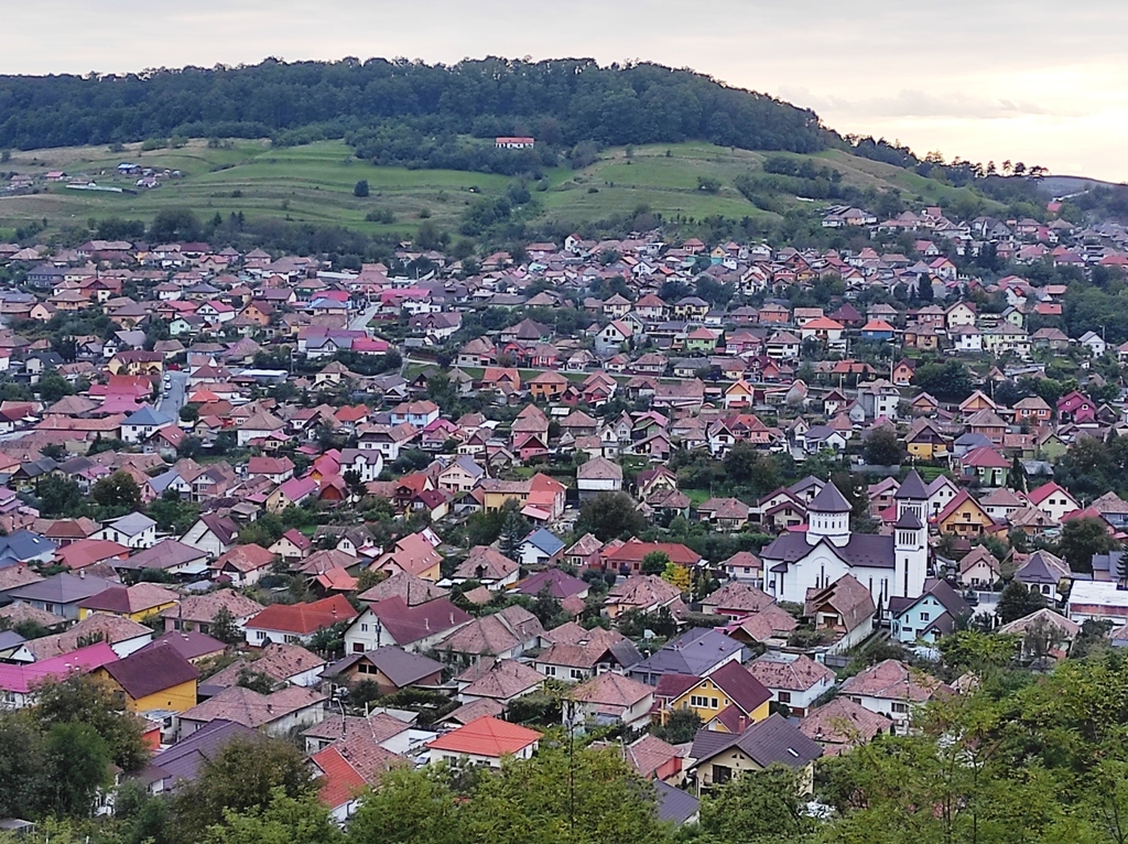 După acea drum întins foarte lung, interminabil, prin poieni și multă multă pădure, copaci viguroși, sate nu sunt deloc, parcă numai ajung.. Dar dintr-o dată îmi apar în față niște vedenii printre copaci care apar și dispar, par niște imagini fantomatice.. este mult râvnitul Mediaș pe care de azi dimineață mi-l doresc să îl văd. Ajung și la un veritabil punct de belvedere, de unde orașul se vede perfect, și devin un pic nostalgic!