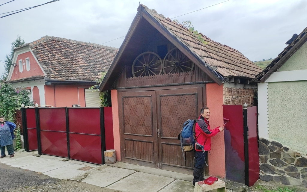Părăsesc fascinantul Biertan, și casele sale frumoase, dar nu ies bine din localitate că îl întâlnesc pe nea Iosif Moldovan care își vopsește poarta și nu scap ocazia de ai cere pensula și astfel de a da și eu o mână de ajutor la frumusețea acestei comune. Îl pun să îmi facă și o poză dar apare și soția dânsului, pe care nu o prinde decât pe jumătate în fotografie, și de aici se confirmă încă o dată faptul că femeia este jumătatea bărbatului.