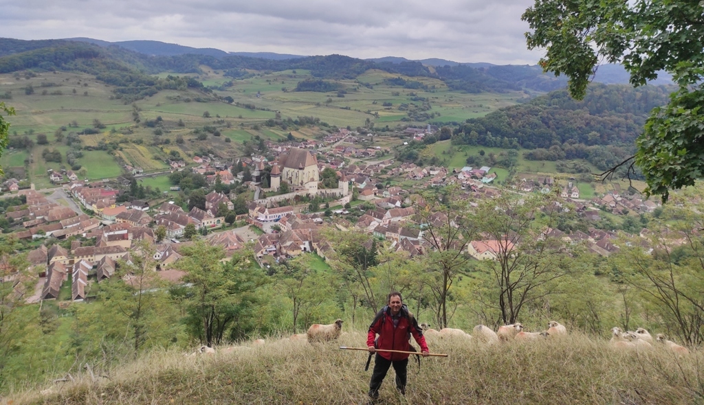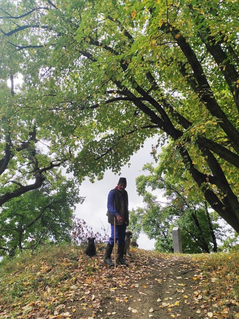 Las în urmă satul, și pe colină am parte de încă un punct de belvedere, apoi merg mai departe prin pădure și dintr-o dată apare în fața mea o haită de câinii și mai mari și mai mici, dar sunt foarte prietenoși și stă și la poze. Nu departe este și nea Simi ciobanul care are pe lângă el doi cățeluși, unul ciobănesc care se numește Băsescu iar pe domnișoara mai mică care este de culoare neagră si care când o să fie mare o să întoarcă oile, o cheamă Nadia.