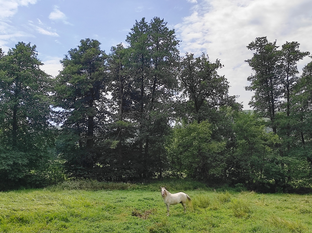 Trec apoi pe lângă cea mai frumoasa casă din sat iar acolo pe terasă la etajul unu e un câine negru, poate el e proprietarul, încearcă să îmi spună ceva dar latră prea tare, eu nu înțeleg nimic și mai bine îmi văd de drumul meu.