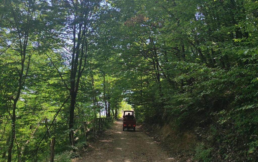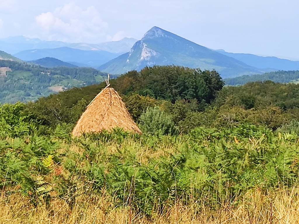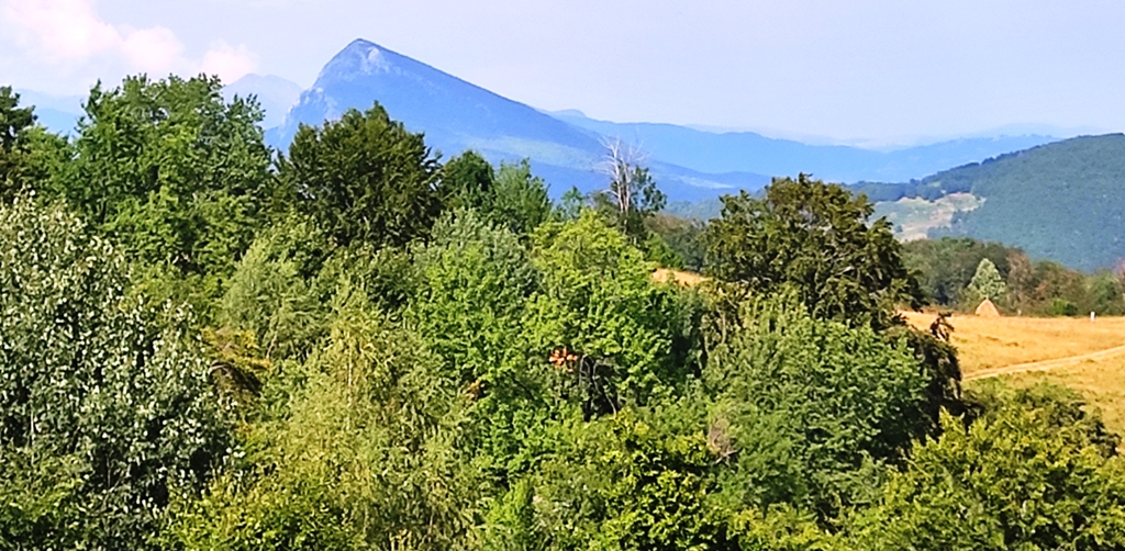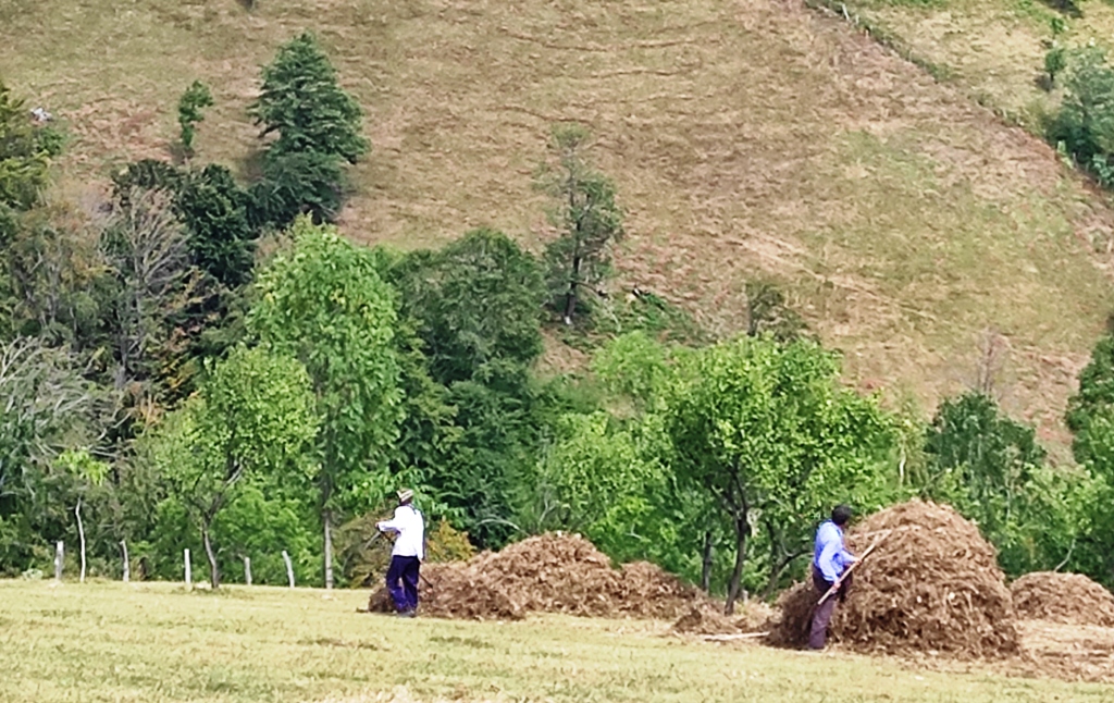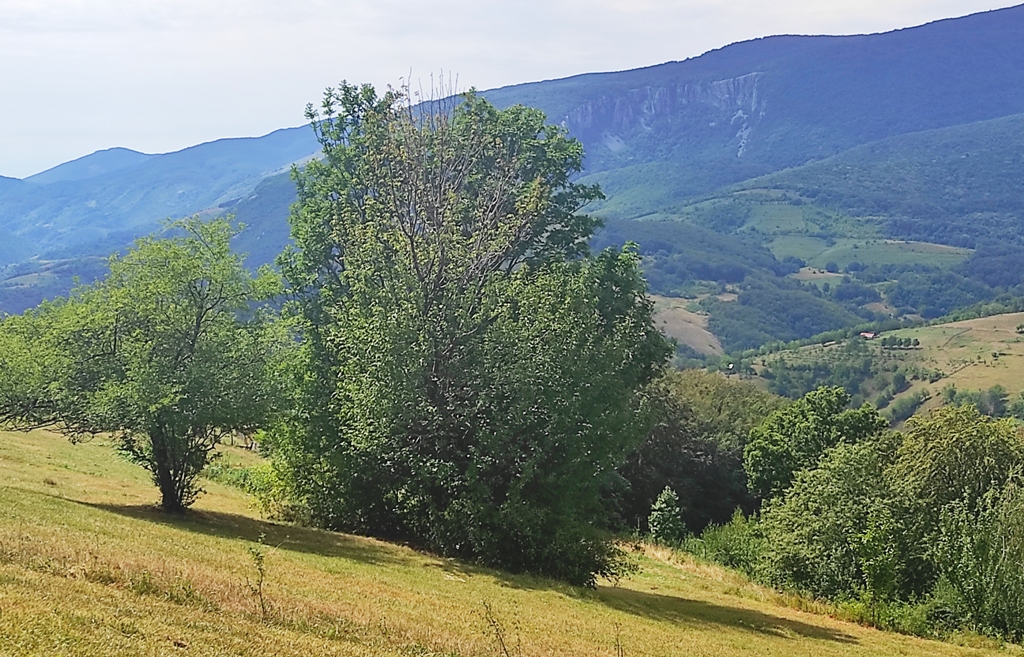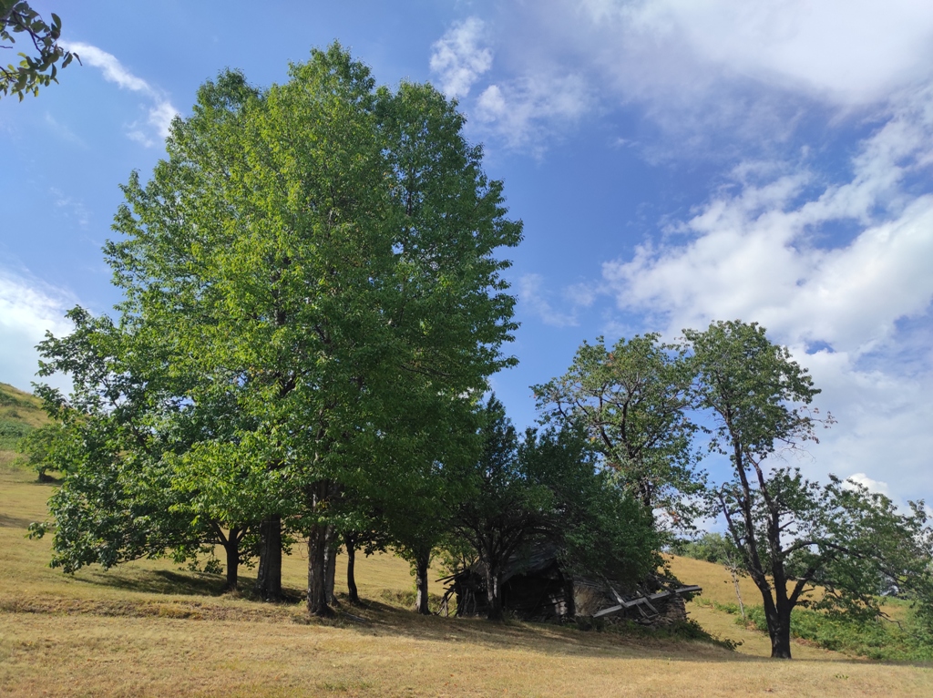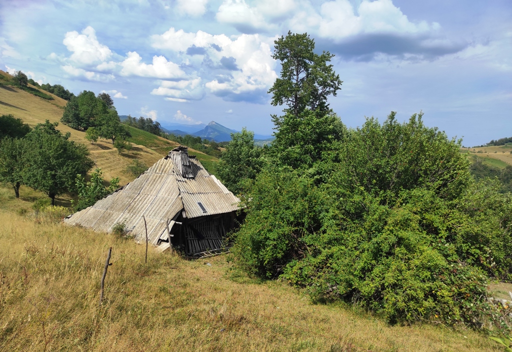 Părăsesc până la urmă Isverna și când ajung în vârful dealului deasupra satului Drăghești îi găsesc la adunat de fân pe Dan Popescu și pe mama sa tanti Olimpia. Nu ezit să le ofer o mână de ajutor, măcar cât a face o poză iar apoi am marea surpriză să constat că nea Dan mă cunoaște de când era cu oile prin Poiana Beletina iar eu venisem cu un grup din Arad în drumeție prin Munții Mehedinți. Ca să vezi ce mică e lumea.