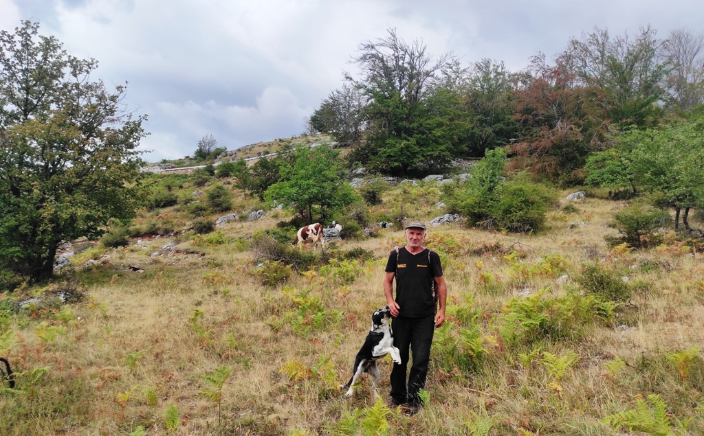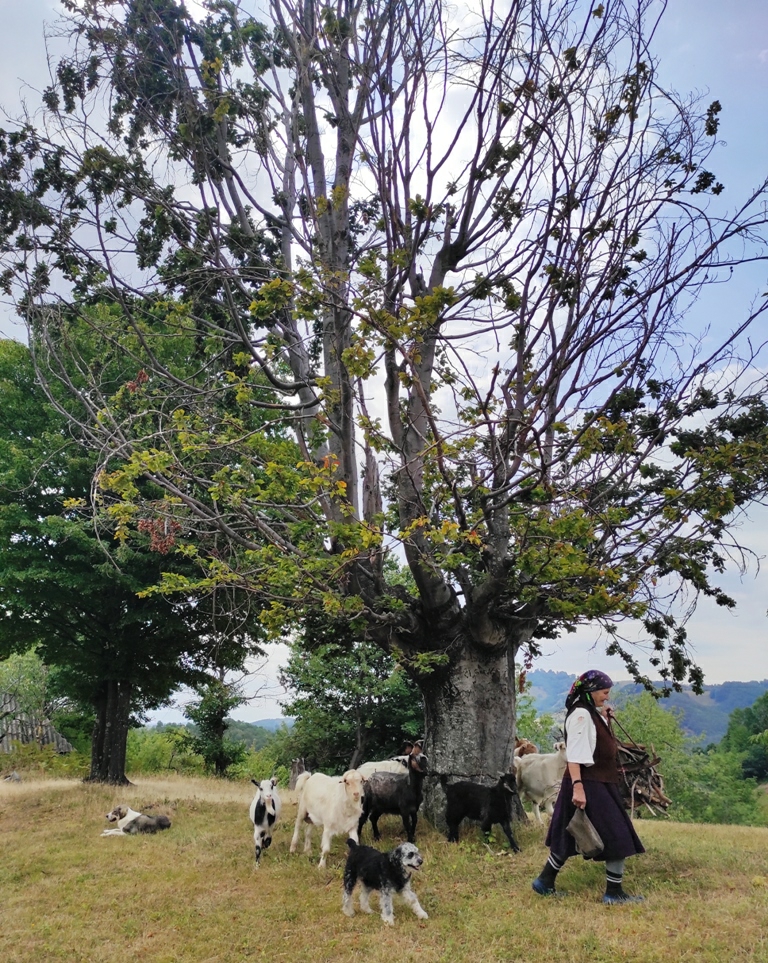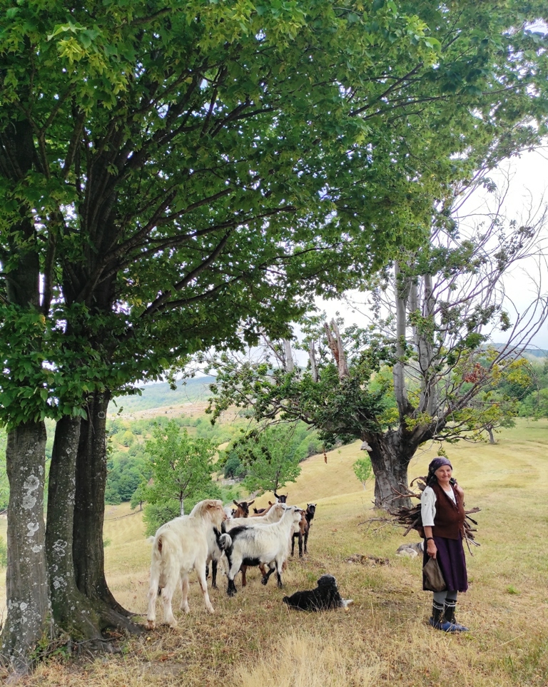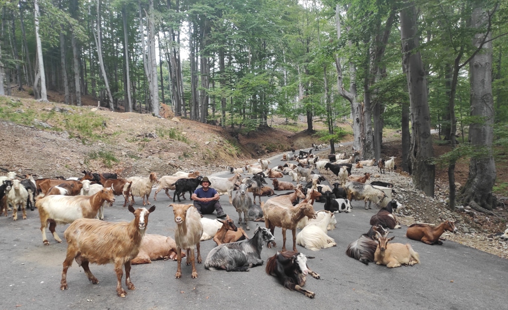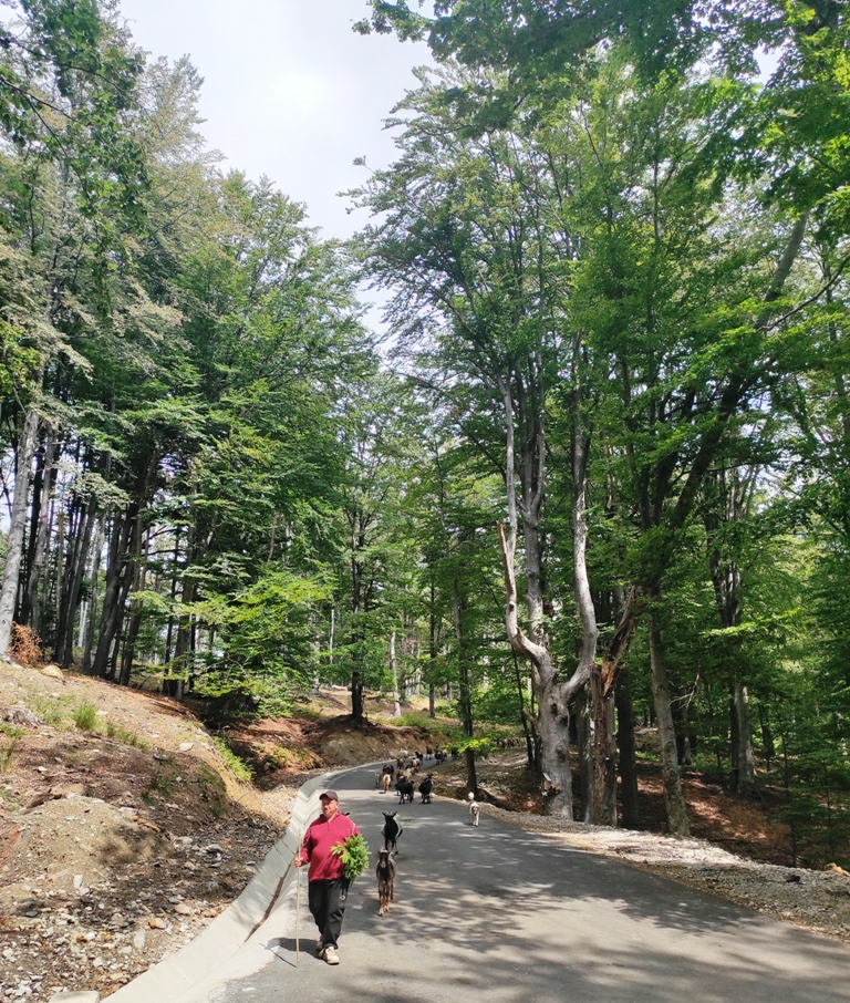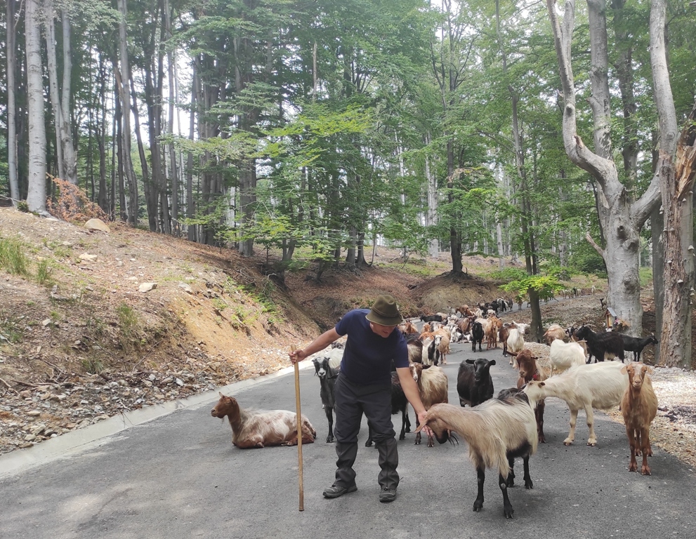 Mai încolo îl găsesc și pe nea Traian și el tot cu caprele, îl învăț să-mi facă o poză dar nu pricepe deloc, în schimb îmi arată toate scurtăturile traseului meu de astăzi, dar eu îl ascult și fac tot ca mine.