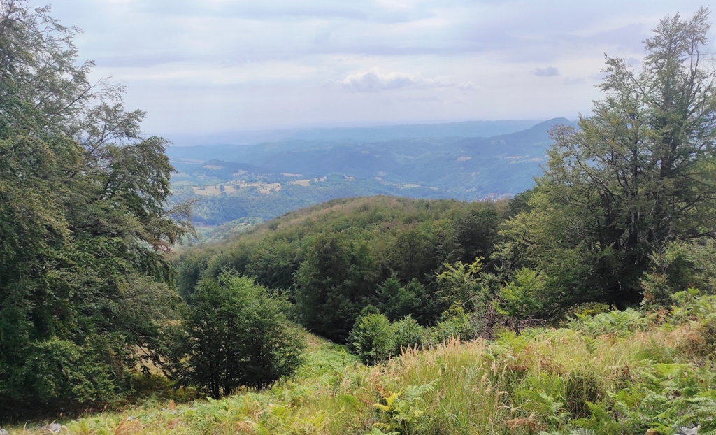 După ce îmi iau la revedere de la Niculae Cârstea și de la Giorgică Ciorbă, îndrumătorii armatei de caprine, pornesc în aproape interminabilul traseu de deasupra Văii Cernei care dealtfel mă și răsplătește cu peisaje de-a dreptul magnifice începând cu Vârful lui Stan care se află în imediata apropiere, Munții Cernei după vale iar în zare îndepărtatul Retezat, Godeanu sau Vâlcan. Prind și câteva rafale de ploaie dar fiind în pădure nu prea mă afectează.
