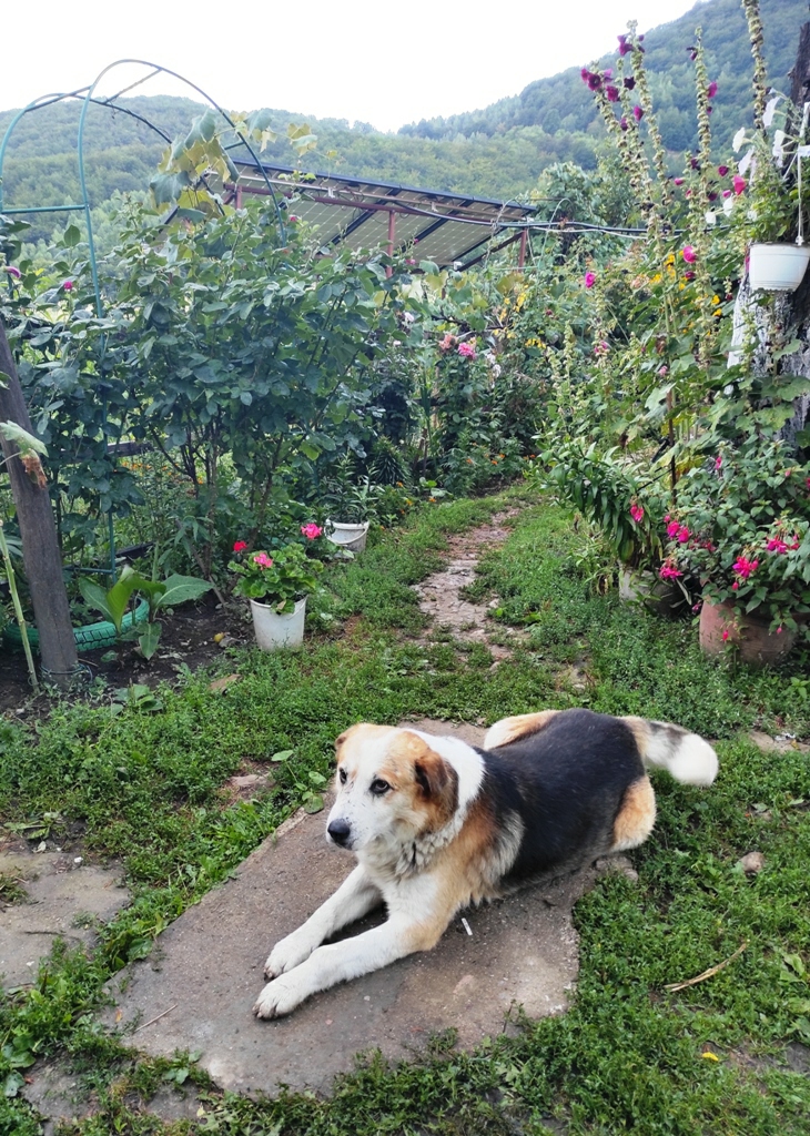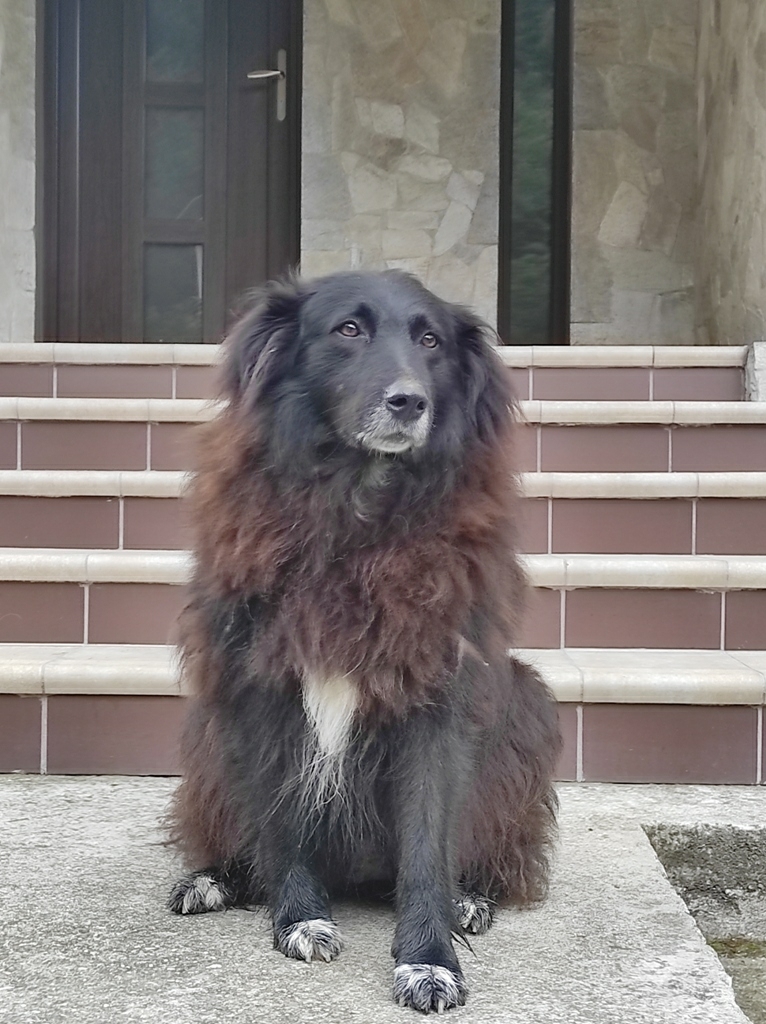 Zi care se anunță destul de ploioasă, am motive să mai lenevesc puțin în pensiunea de lux de pe Valea Cernei, apoi fac o poză de grup cu domnul Marius și doamna Jeni, dar înainte de plecare îl surprind într-o fotografie chiar și pe câinele negru cu chip de gorilă, care mie dealtfel mi se pare tare simpatic.