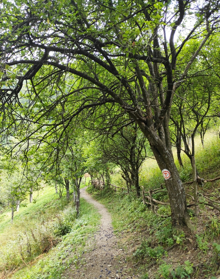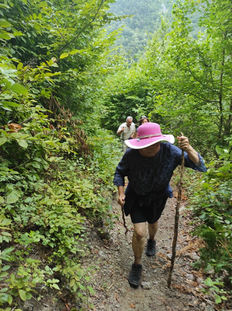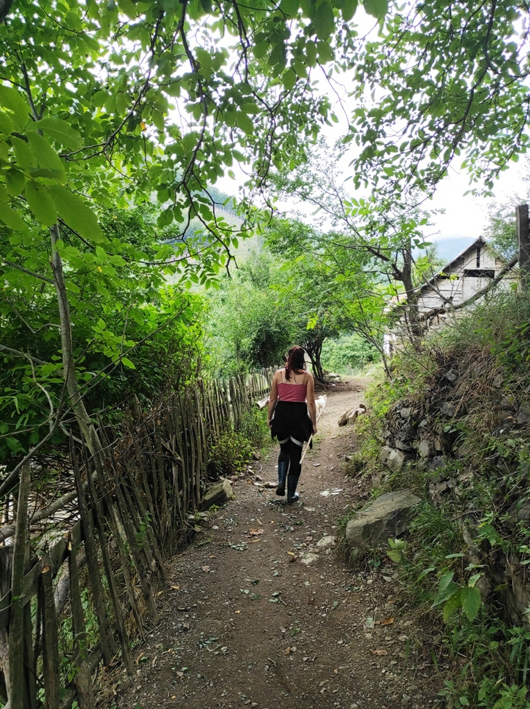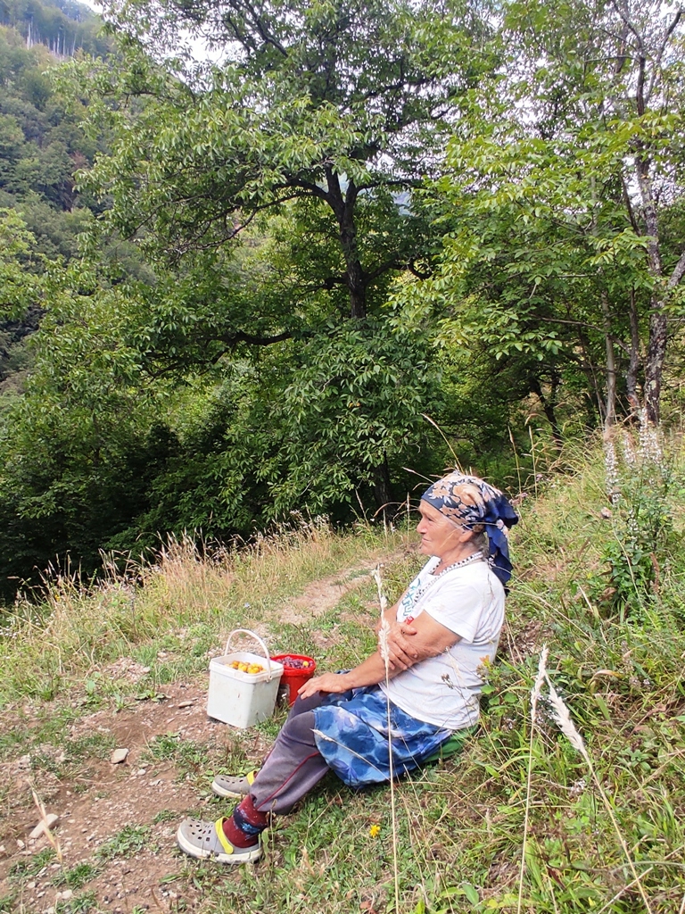 O las pe Alina în liniștea ei sufletească și împreună cu grupul meu select ne continuăm drumul și o întâlnim pe tanti Maria care cară două găleți de corcodușe, probabil le duce la nea Petru pentru țuică. Locuiește într-o casă care are peste 200 de ani, tanti are 86 de ani, copiii îi sunt plecați prin lume, au vrut să o ia și pe ea, dar ne spune că cea mai mare dorință a ei e să fie înmormântată la cimitirul de lângă biserica din Scărișoara! Ne-au apucat emoțiile de-a dreptul!