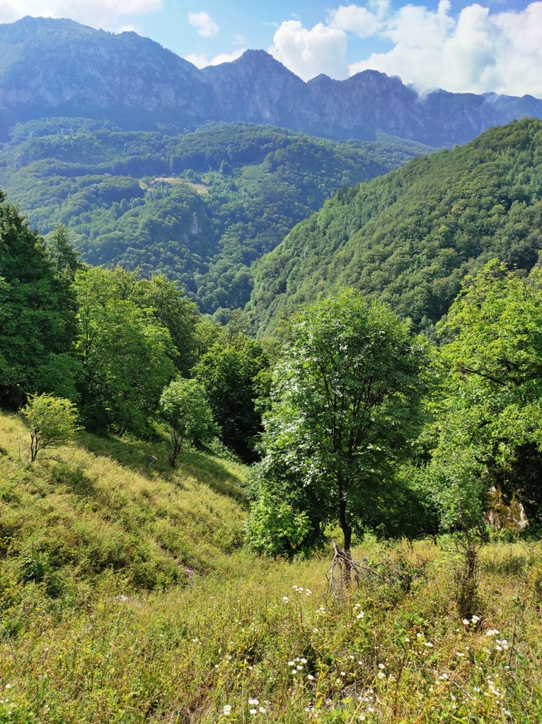 Rămas singur, pornesc mai departe și mă bucur nespus de peisaje, de creasta Munților Mehedinți, de Vârful Arjana care este preferatul meu şi pe care îl iubesc tare mult, și mă apucă deodată nostalgiile când zăresc în depărtare casa lui Nea Pătru aflată deasupra Cheilor Prisăcinei, iar undeva mai încolo aproape de Dobraia în mijlocului pădurii, sigur este tanti Ana care locuiește singură și tot așteaptă ca cineva să îi mai calce încă odată pragul!