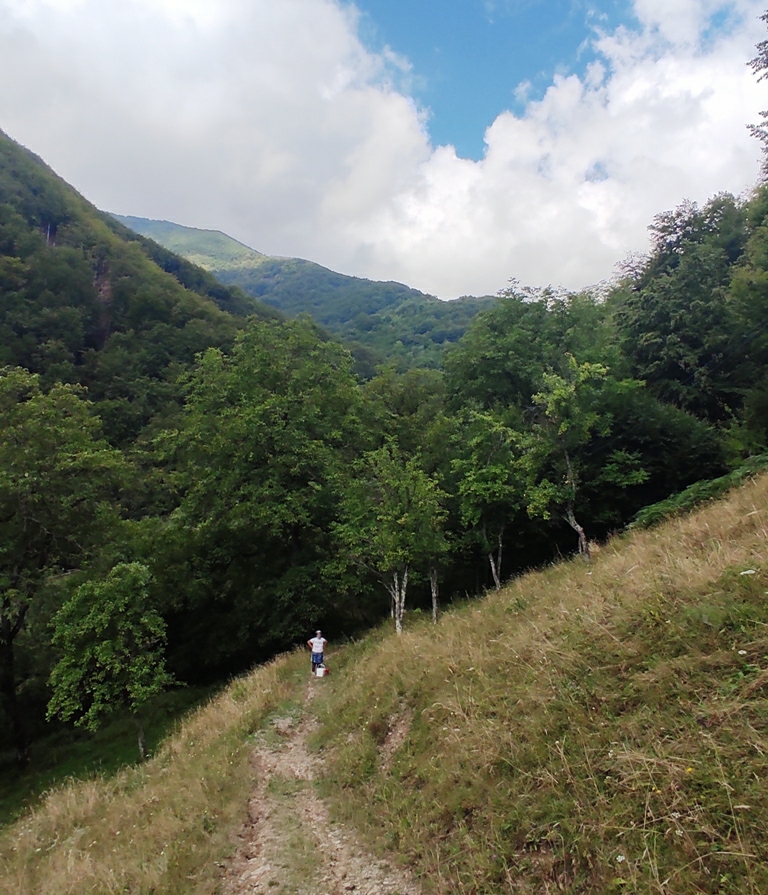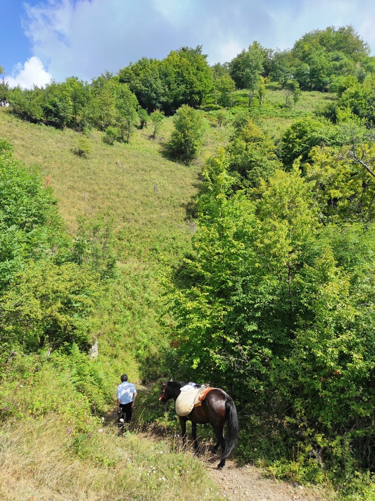 Nu mergem prea mult că întâlnim o haită de câini, dar trecem ușor primul examen. Apoi îl întâlnim pe nea Petru Visescu supranumit Istioc, care are un cal foarte frumos și ne spune că satul Țațu în care ne aflăm acum, avea în trecut peste 100 de oameni iar în prezent numai locuiesc decât 5 persoane, iar când era el la școală erau 40 de copii în sat iar acum numai este nici unul.