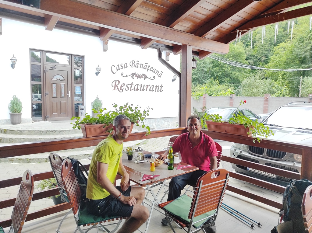 Ajung foarte repede la Reșița, de fapt la intrarea în oraș, și aici îl întâlnesc pe prietenul meu Laurențiu Artugian pe care nu-l mai văzusem de vreo 4-5 ani, el este om de munte adevărat și o persoană cu reale veleități intelectuale, profesor universitar de profesie. Mergem împreună la Casa Bănățeană unde eu servesc masa și timp de aproape două ore depănăm amintiri din trecut și discutăm lucruri interesante. Repede mai trece timpul când găsești persoana potrivită cu care să stai de vorbă!