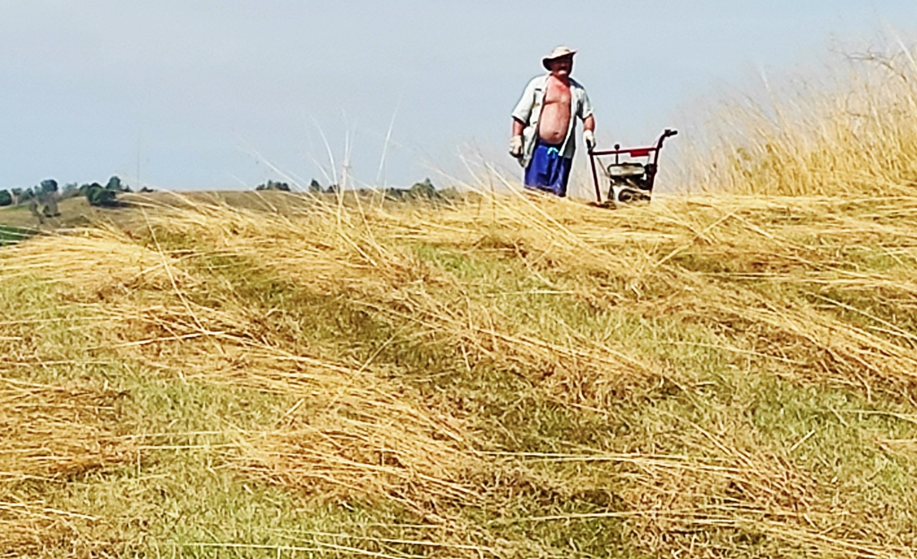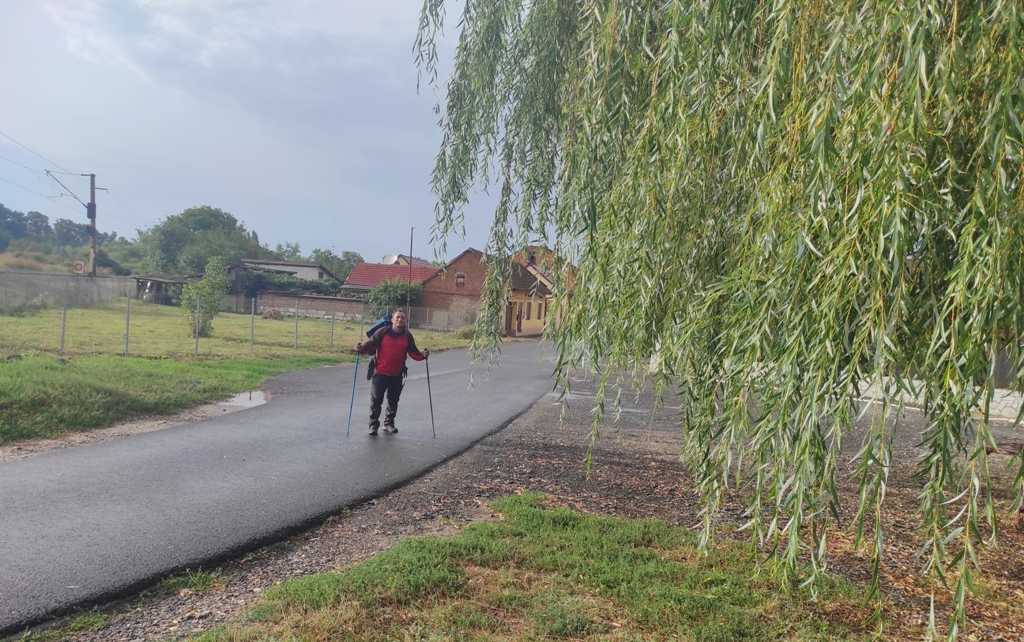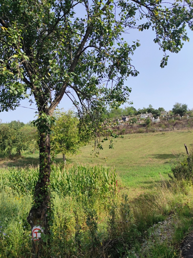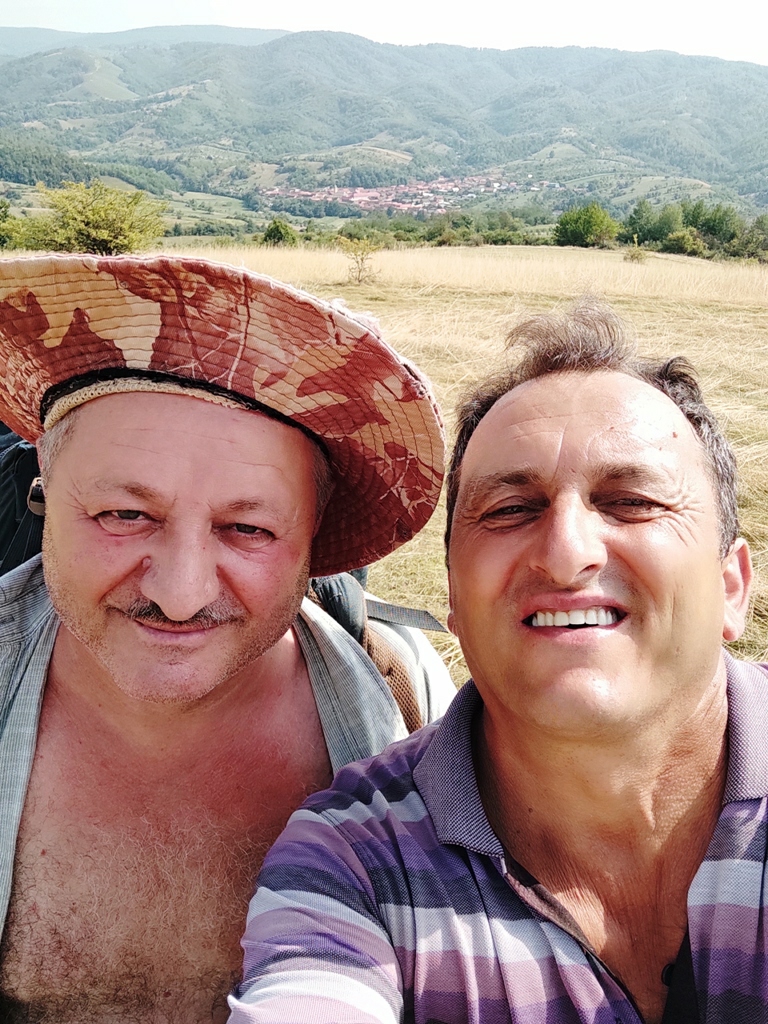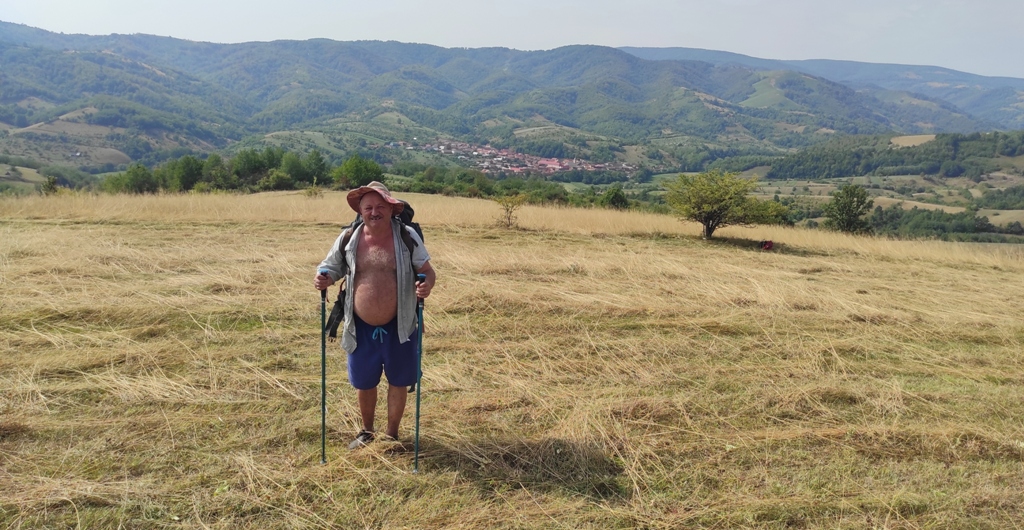 Urc pe poteca de lângă cimitir, și cumva dezorientat de un câine negru care îmi iese în cale, deviez din traseu și mă pomenesc în altă parte. Mă întorc o tai direct pe câmp şi cu aceasta ocazie îl cunosc pe nea Ghiță Iliescu care este la cosit. Se oprește nițel din lucru, îl întreb de traseu, mă invită la o bere, un pahar de palincă și chiar vrea sa îmi dea și o bucată de halva la pachet. Îl refuz respectuos, povestim facem și poze, schimbăm și numere de telefon și îi promit că data viitoare o să mă cazez la dânsul.