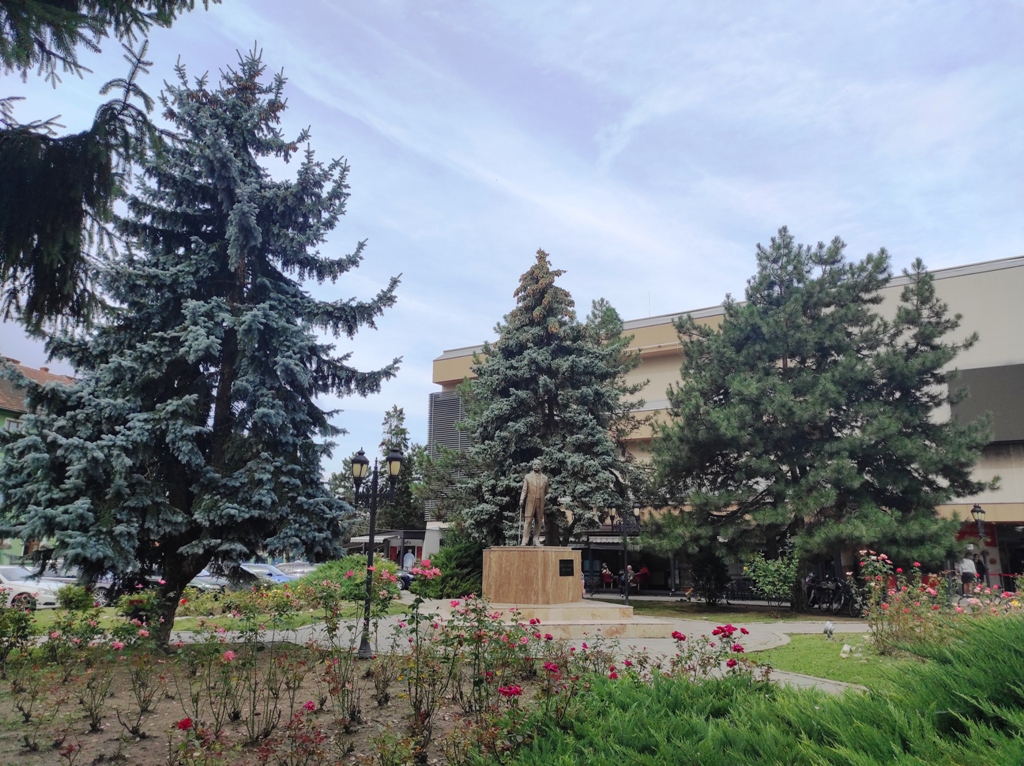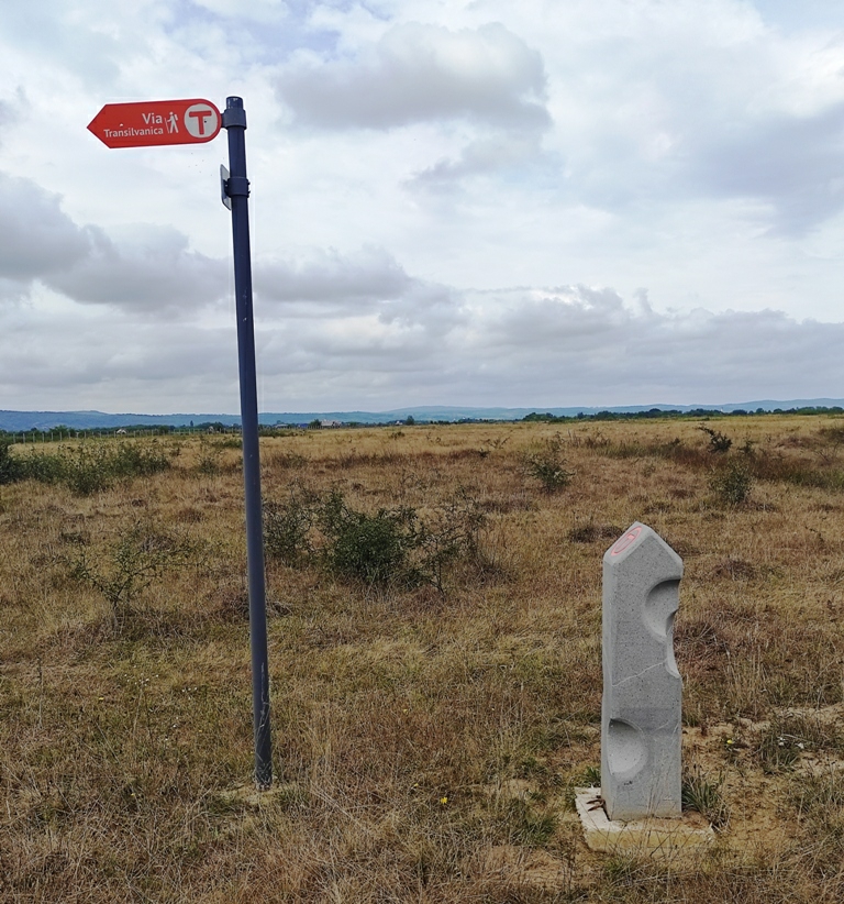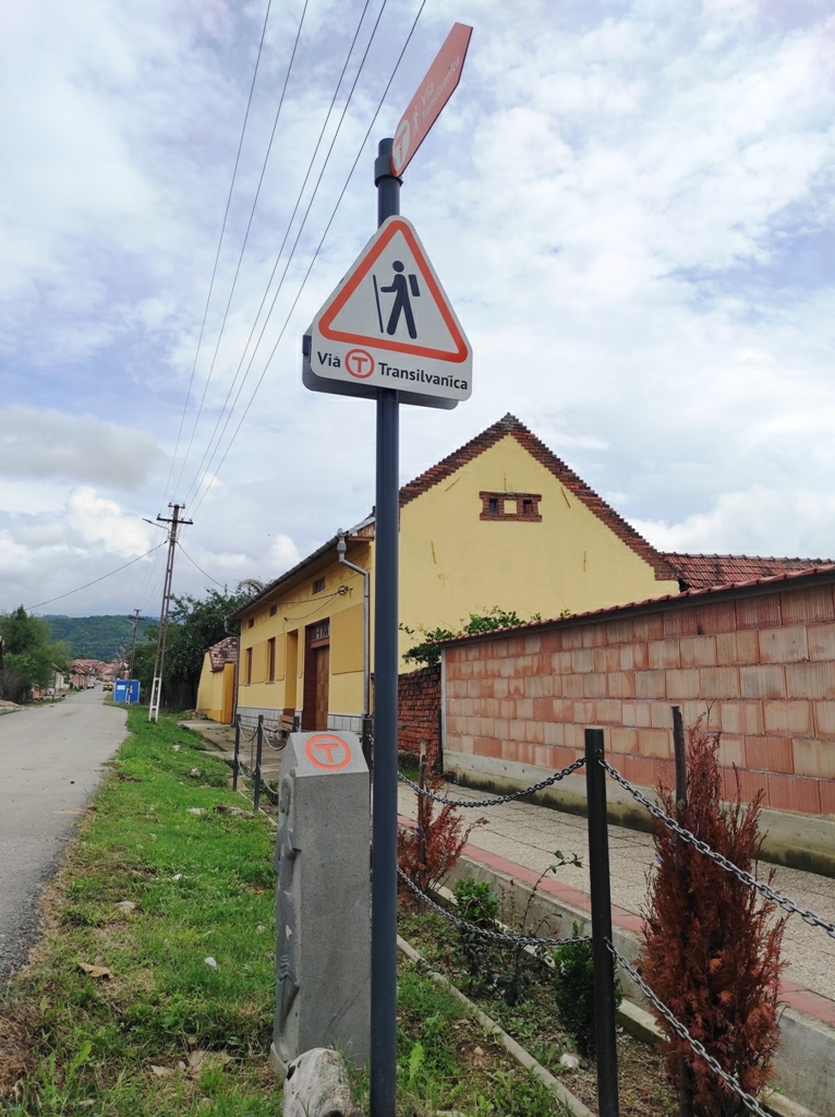 După o mică pauză de ploaie, mă întorc repede pe Via Transilvanica și după ce fac poza cu borna din centrul orașului, pornesc pe lunga stradă Traian Doda până când dau de aeroport și atunci îmi dau seama că am deviat un pic de la traseu, dar nu mă mai întorc.
