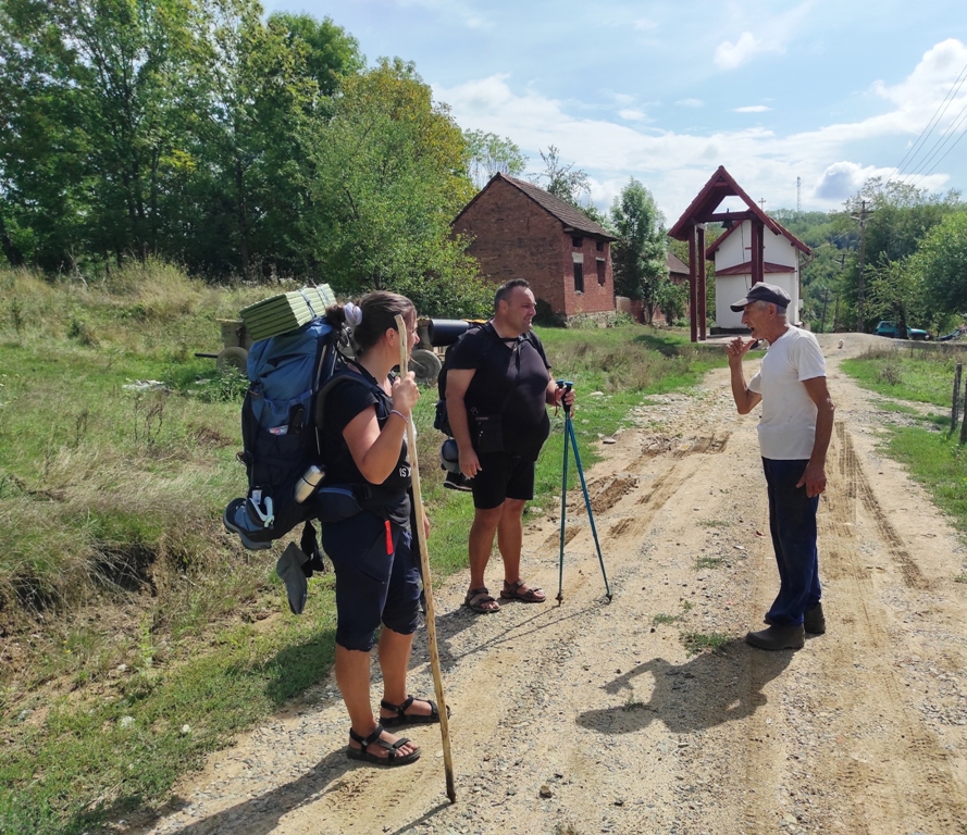 Tot la Cicleni am plăcuta surpriză de ai întâlni pe Adela și Sorin, doi frați din Timișoara care călătoresc pe Via, de la Bucova până la Crușovăț. Facem schimb de experiențe și promitem că o să ne ajutăm dacă o să mai avem nevoie, ei sunt foarte prietenoși și foarte de treabă. Îl cunoaștem și pe Nea Oprea care are 81 de ani dar nu pare, și pe care îl punem să ne facă poza și bineînțeles facem și cu dânsul una, că așa e frumos.