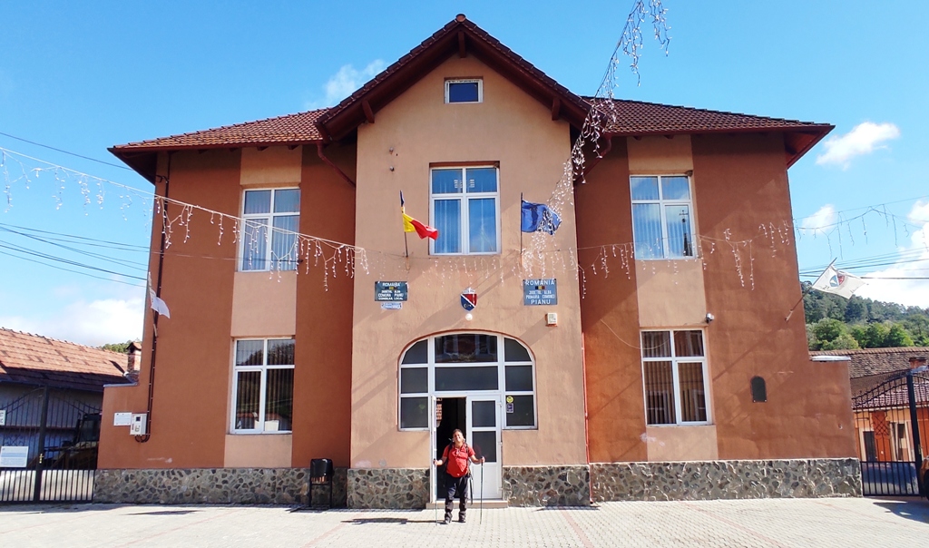 Și, pornesc din nou la drum, și observ că sunt destul de departe de traseu, aseară era noapte, am prilejul de data aceasta să văd localitatea pe timp de zi, ajung în centrul comunei, lumea se întoarce de la biserică, eu trec pe la primărie vorbesc cu oamenii de acolo și când să ies afară mai-mai că dau nas în nas cu o mireasă, mă ia un pic prin surprindere și nu am timp să îi fac și o poză. Dar nu-i nimic, că pe drum după ce trec apa numită Pianu, îl întâlnesc pe câinele cu chip de leu care vrea să fie fotografiat și îi place așa de mult încât până la urmă chiar și adoarme.