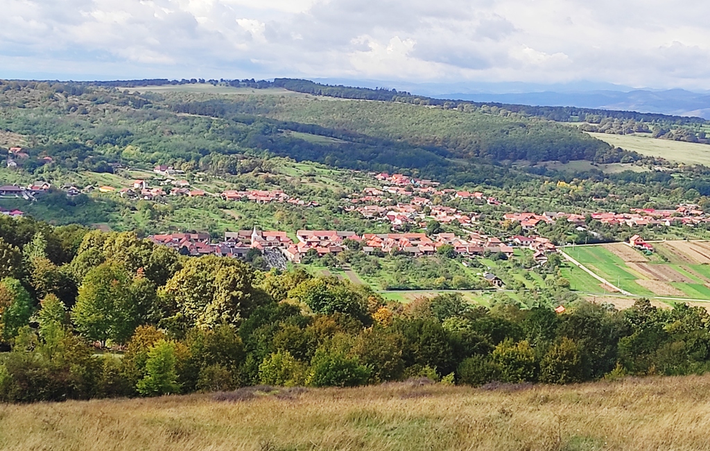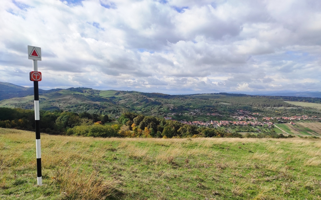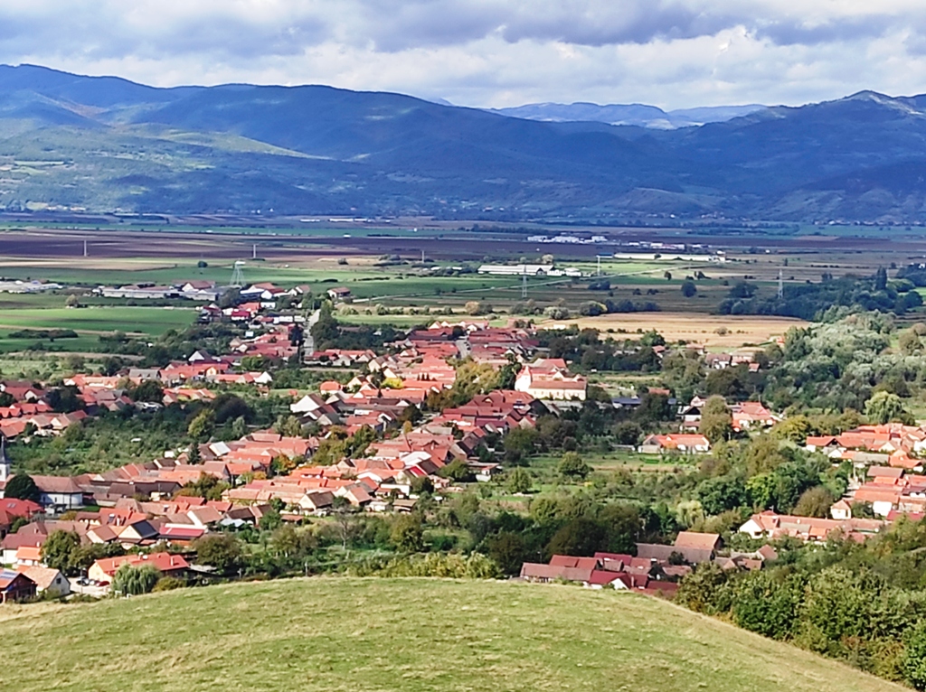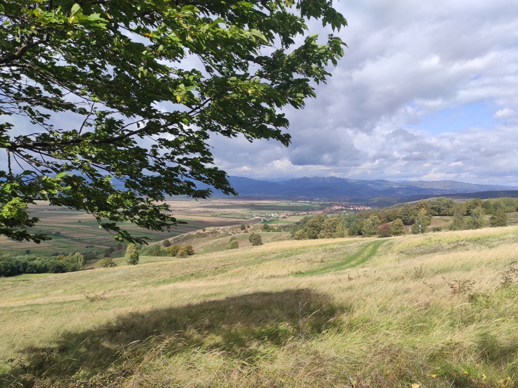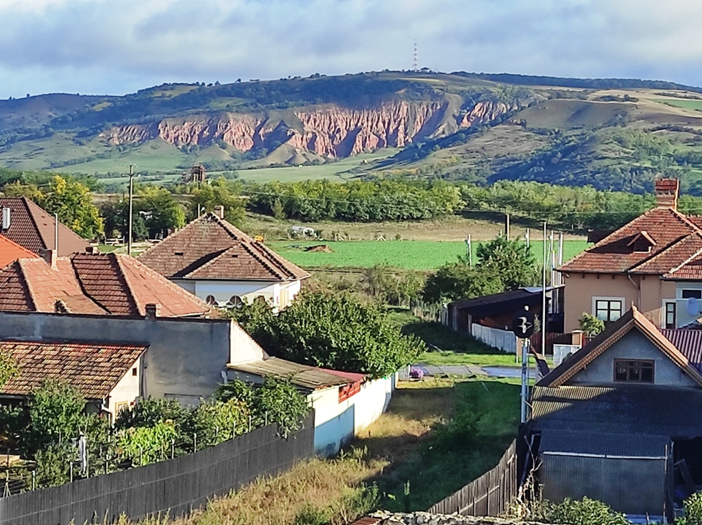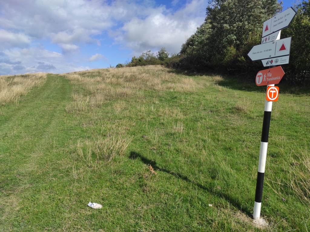 Pornesc pe traseul tematic care se suprapune o perioadă cu Via Transilvanica și am prilejul să admir de sus de pe deal peisajele superbe din zare până dincolo de Valea Mureșului spre munții cei îndepărtați. Întrezăresc și Alba-Iulia, dar nu ajung astăzi! Apare în schimb Sebeşul și mult râvnita Râpa Roșie pe care de mult timp doresc să o văd.
