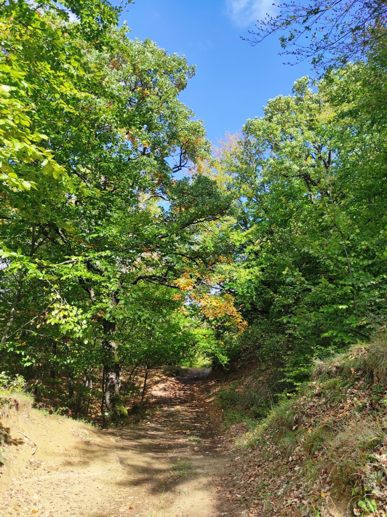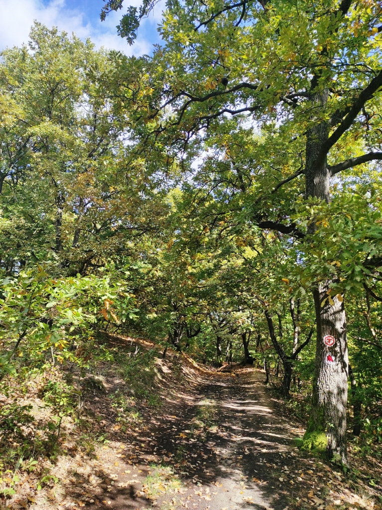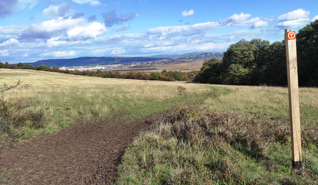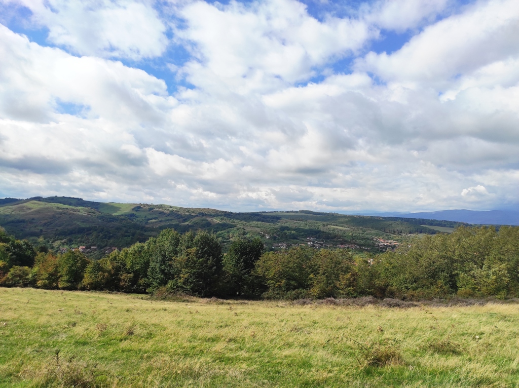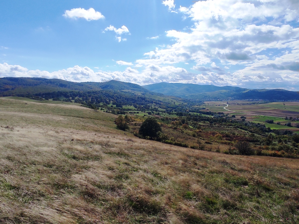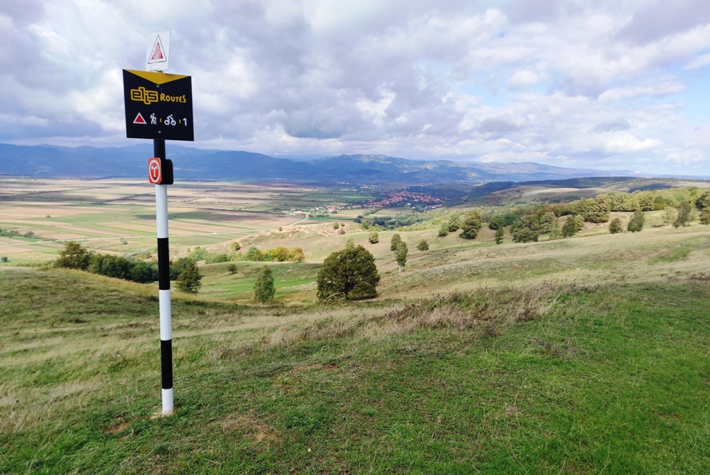 Pornesc pe traseul tematic care se suprapune o perioadă cu Via Transilvanica și am prilejul să admir de sus de pe deal peisajele superbe din zare până dincolo de Valea Mureșului spre munții cei îndepărtați. Întrezăresc și Alba-Iulia, dar nu ajung astăzi! Apare în schimb Sebeşul și mult râvnita Râpa Roșie pe care de mult timp doresc să o văd.