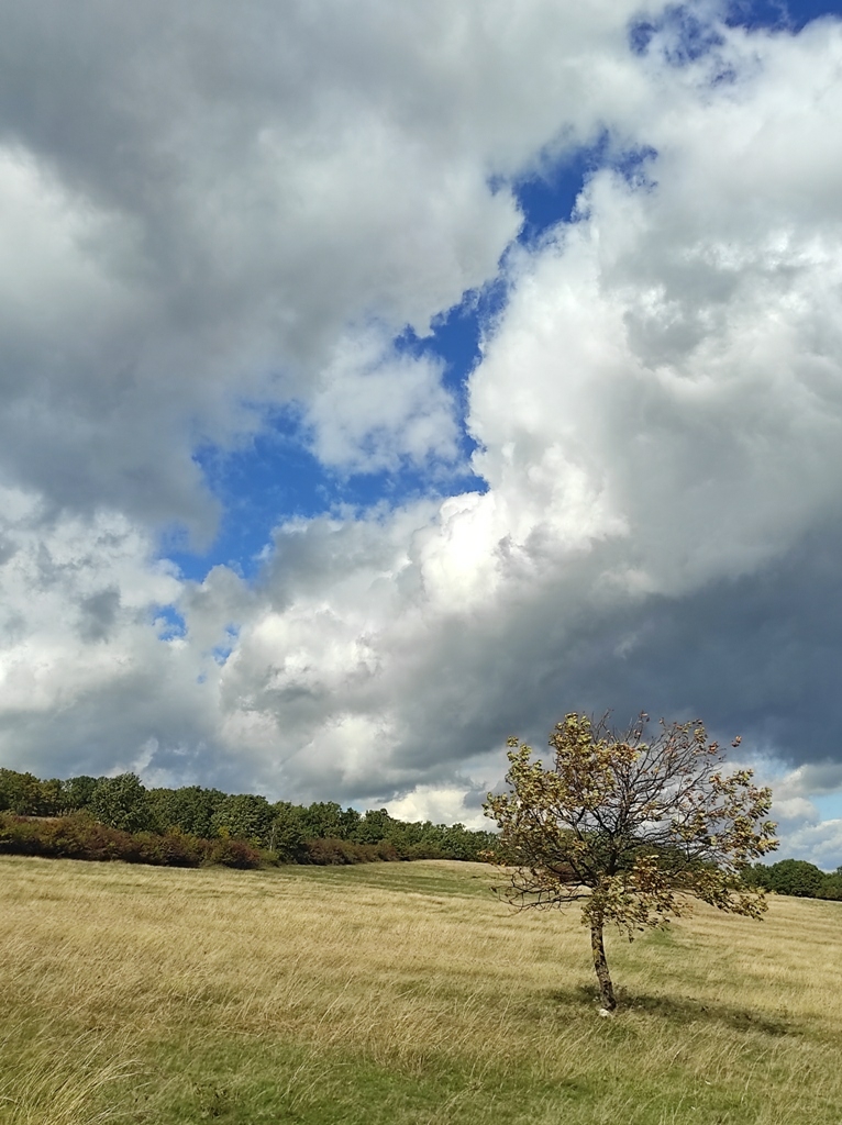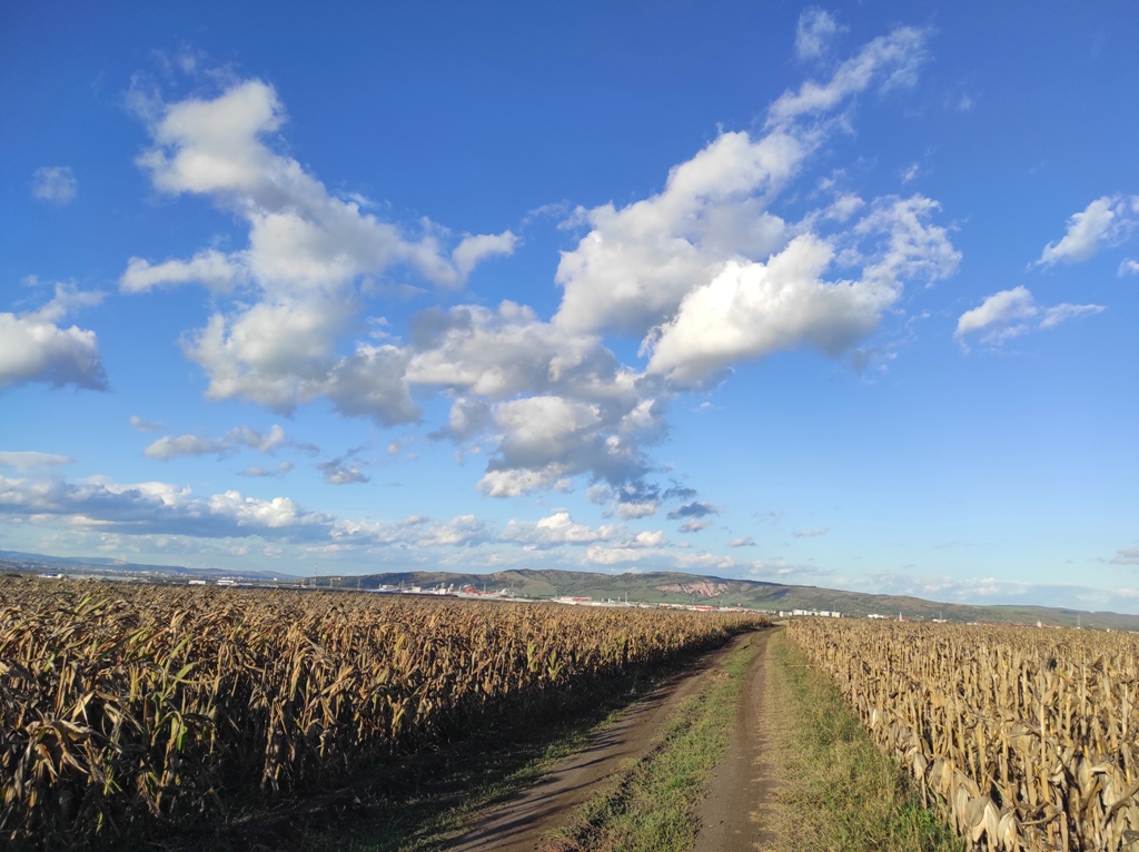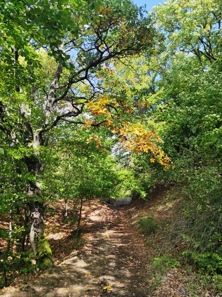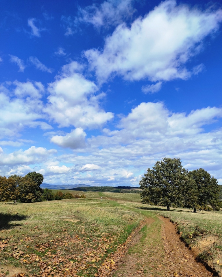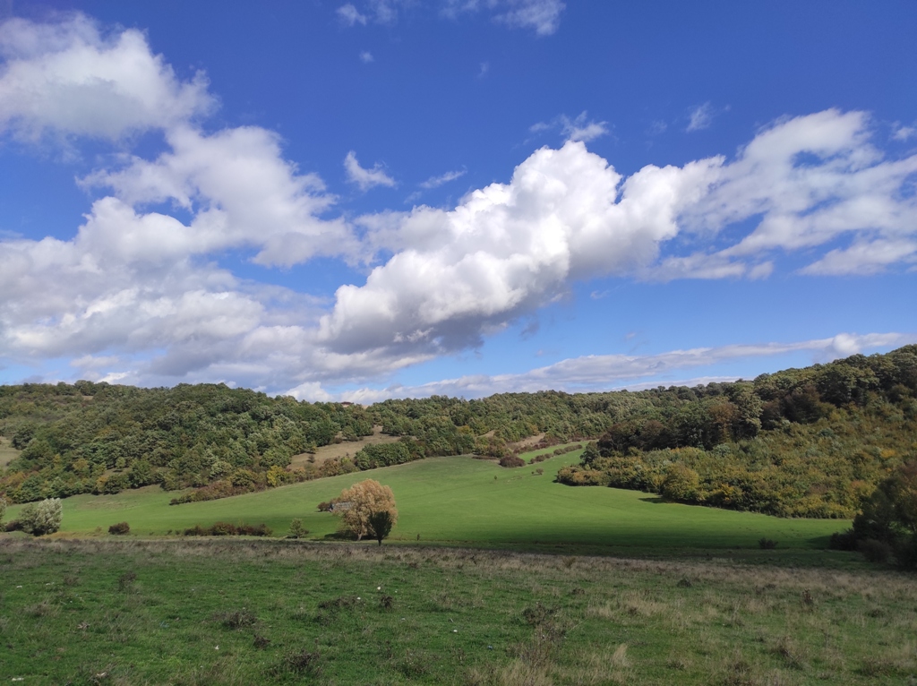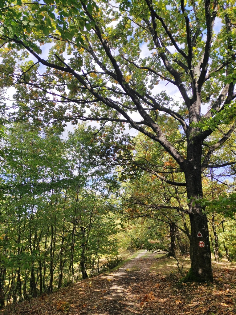 Pornesc pe traseul tematic care se suprapune o perioadă cu Via Transilvanica și am prilejul să admir de sus de pe deal peisajele superbe din zare până dincolo de Valea Mureșului spre munții cei îndepărtați. Întrezăresc și Alba-Iulia, dar nu ajung astăzi! Apare în schimb Sebeşul și mult râvnita Râpa Roșie pe care de mult timp doresc să o văd.