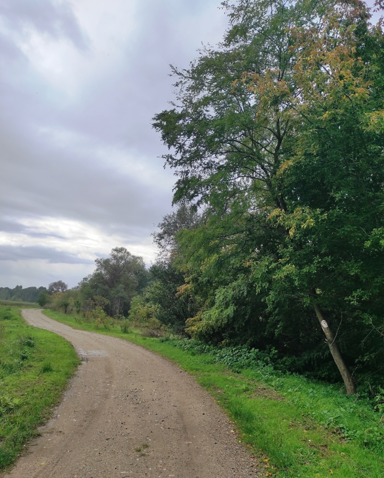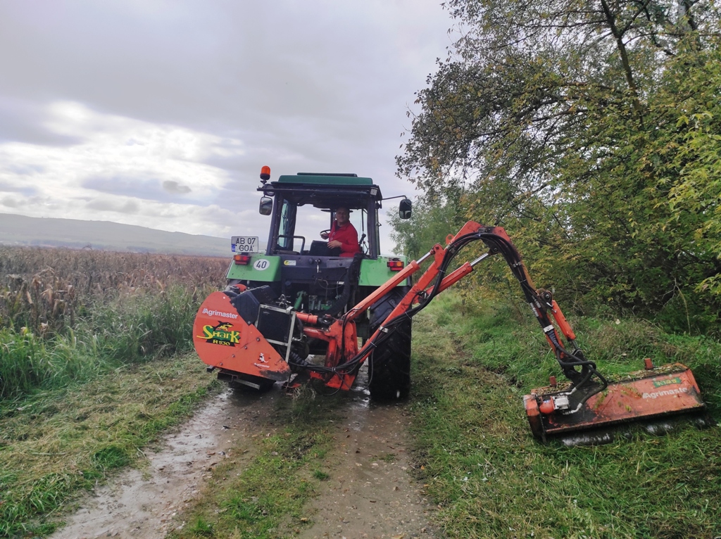 Și, după ce fac poze peste poze, mai stau și la o șuetă cu niște statui și după ce îmi mai iau și doi covrigi aburinzi de la patiseria de lângă colț, pornesc la drum și merg mult de tot prin oraș și apoi și pe lângă el, după care trec Mureșul și acolo dau de nea Ion de la primărie care e cu utilajul său de tăiat vegetație. Eu cred că e de la primăria municipală, dar el îmi spune că e de la Ciugud și nu ezit sa îi ofer și eu o mână de ajutor, măcar cu vorba dacă nu pot cu altceva.