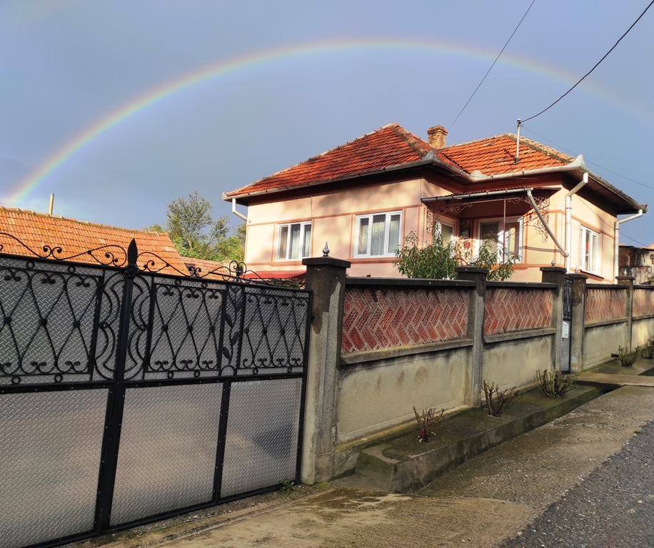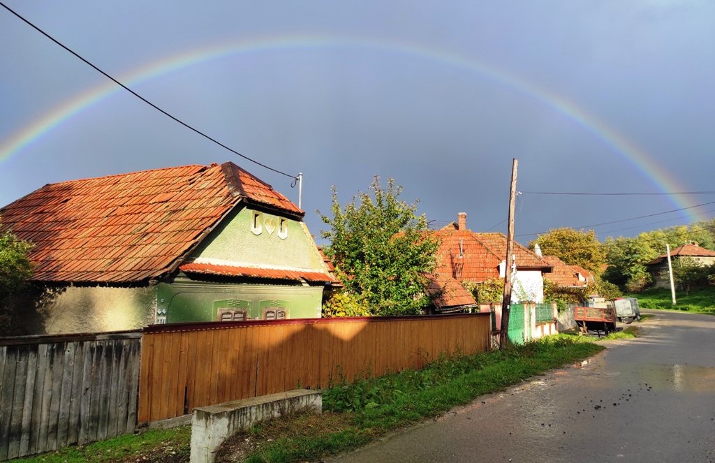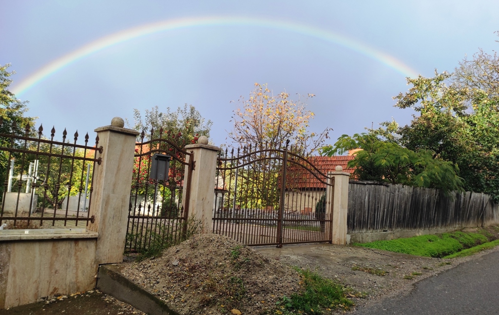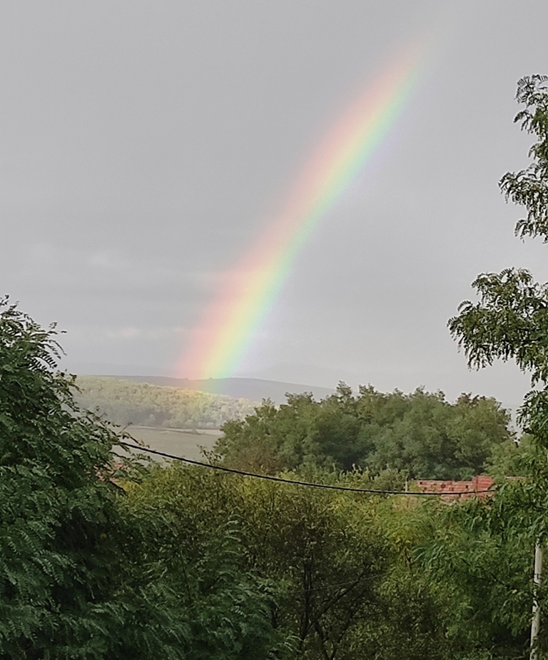 Eu, mă adăpostesc puțin de ploaie și sper să se oprească repede, și chiar așa se și întâmplă și apare o măreție de curcubeu și nu mă pot abține să nu îl provoc pe nea Cristi la o ședință foto, el nu se pricepe deloc dar încerc să îl învăț eu.