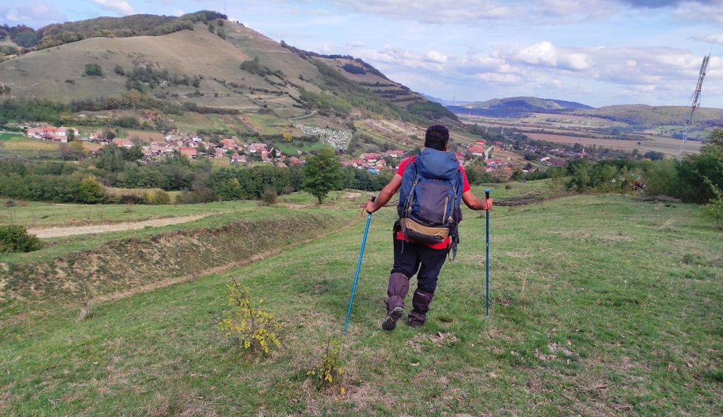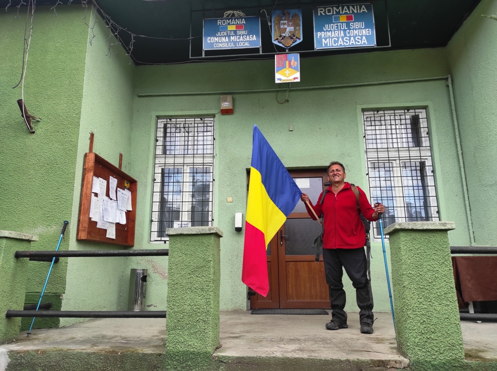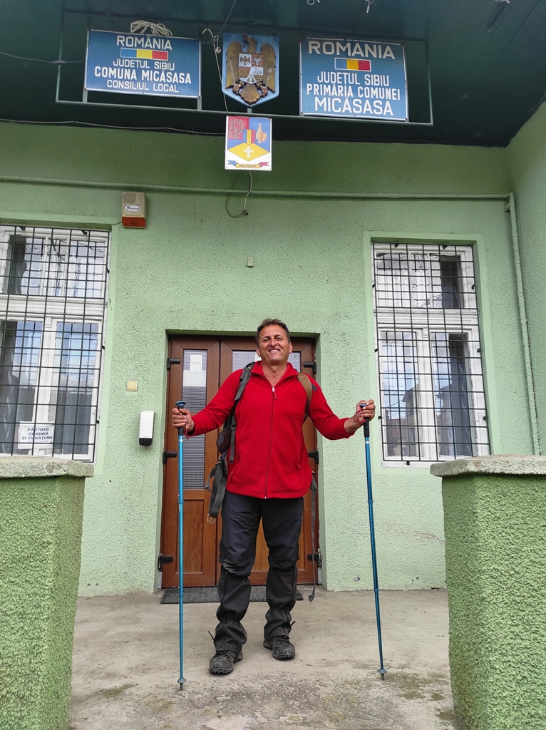 Cobor după aceea liniștit, trec și de penultima bornă, vorbesc la telefon și cu prietenul meu de la Timișoara, Ciprian Lupsa, care este primul care mă felicită pentru încheierea traseului, apoi ajung la capăt de tot și îl întâlnesc pe primarul comunei Micăsasa, domnul Timotei Păcurar, care îmi face și pozele de final și îmi predă și o adevărată lecție de artă fotografică.