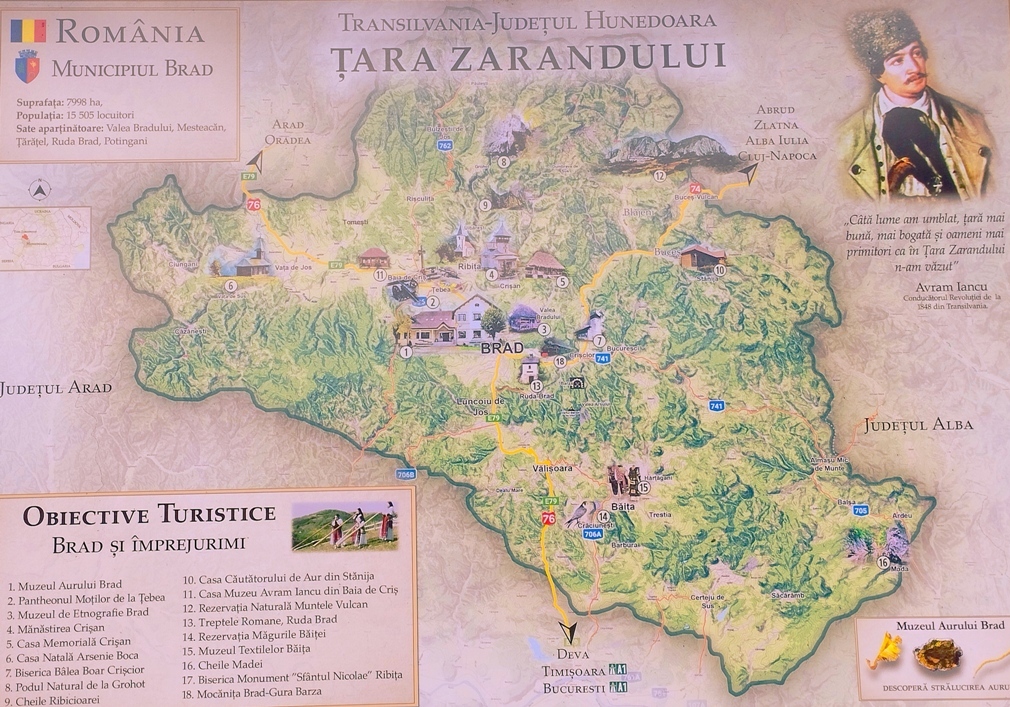 Sosesc la Brad, după mai mult de 4 ore de mers cu trenul, în oraşul municipiu socotit a fi capitala ,,Ţării Zărandului” şi remarc gara de o frumuseţe rară, poate una dintre cele mai frumoase din ţară, cel puţin pe exterior. Apoi, mai merg vreo 300 de metri şi ajung la pensiunea Ana Maria, locul unde o să înnoptez şi care este o locaţie absolut superbă. Nici preţul nu mi se pare prea mare, domnişoarele recepţionere foarte amabile şi au şi restaurant local renumit în zonă.