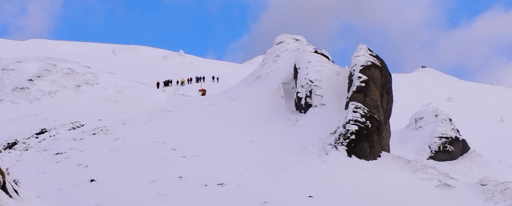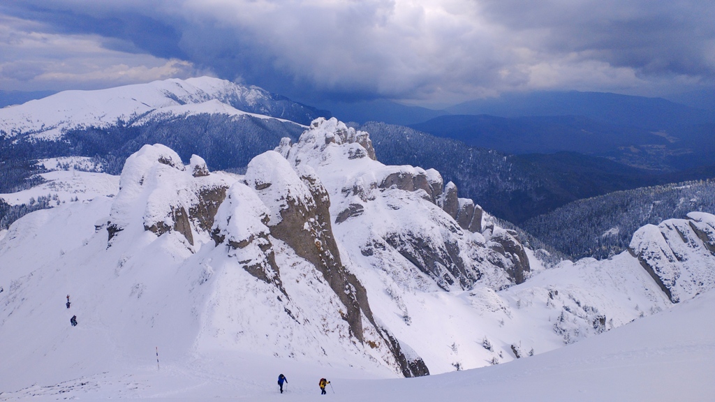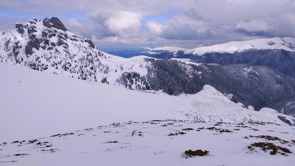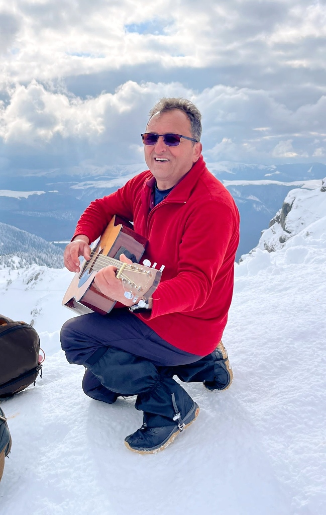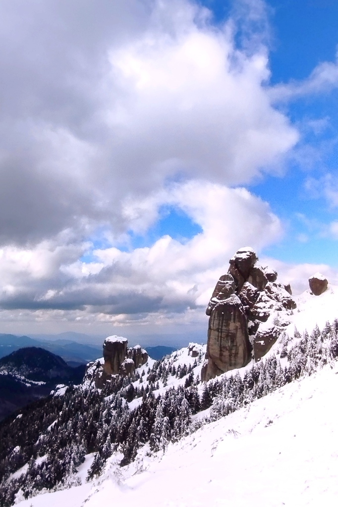 Pornim, aşadar, din Pasul Bratocea, timp de aproape 4 ore, până pe culmea cu acelaşi nume, şi după ce trecem şi admirăm Turnul lui Goliat, Colţii Bratocei, Turnul Roşu şi Porumbelul, ajungem la altitudinea cea mai înaltă din masiv, 1954 metri. Este a doua oară când mă aflu pe Vârful Ciucaş, dar de data aceasta şi cu chitara în spate şi nu mă pot abţine să nu schimb şi câteva acorduri.