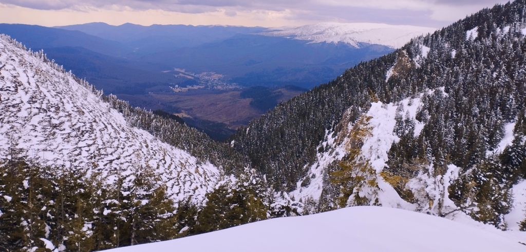 Mai spre stânga Munţii Baiului şi Grohotiş iar în continuare dincolo de Valea Teleajenului, Munţii Siriu şi Buzăului iar în plan mai apropiat Gropşoara şi Zăganu, spre care vom merge în ziua următoare.