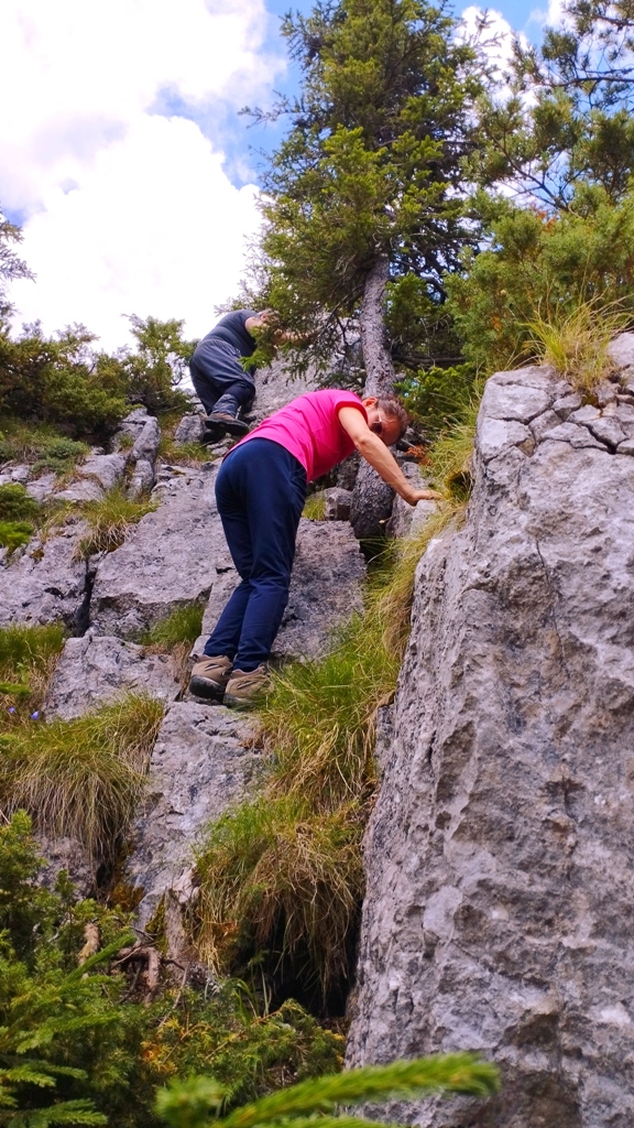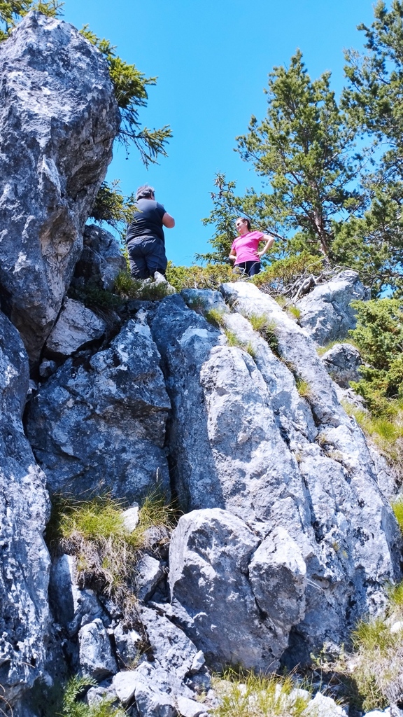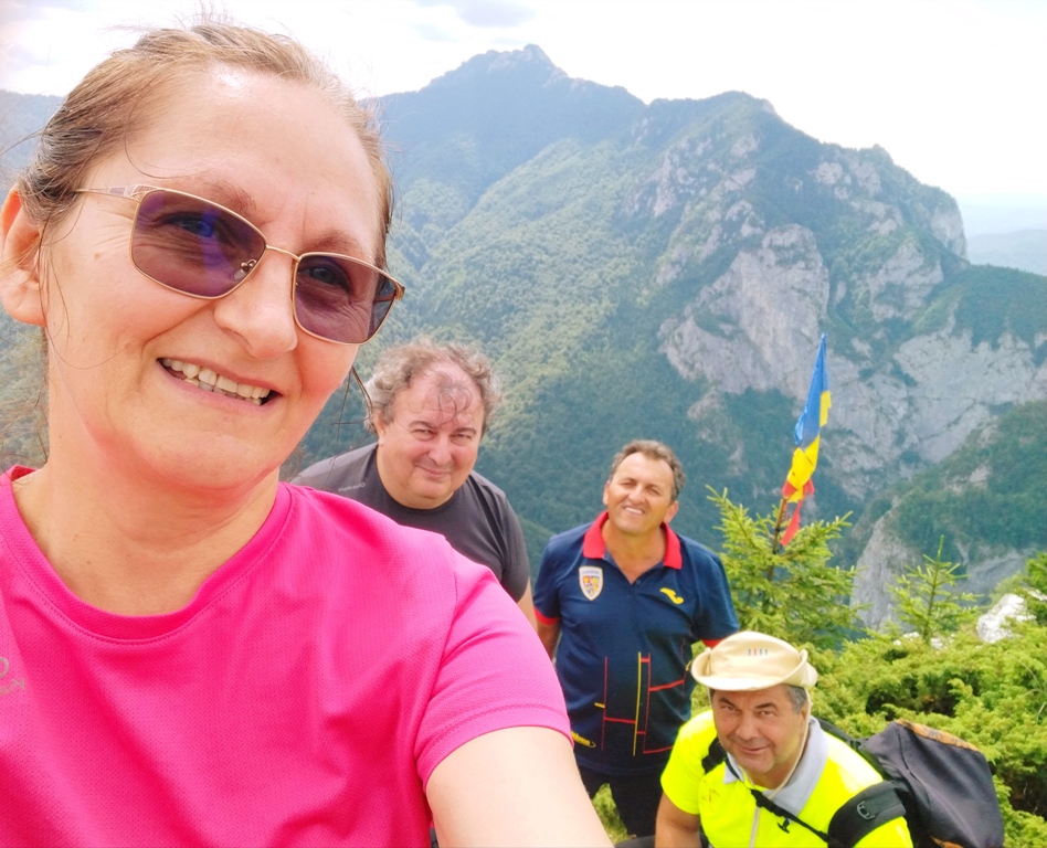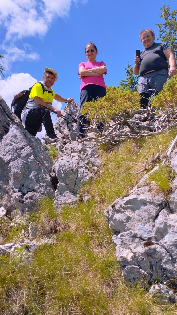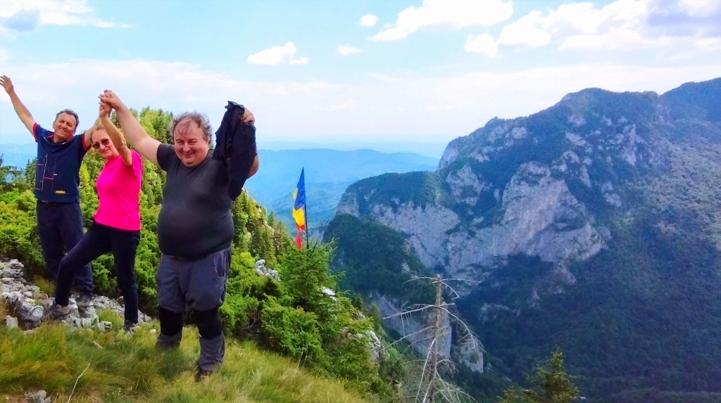 Și, chiar ne-am cățărat puțin și pe hornuri până să găsim traseul cel bun, poteca reală este pe la baza vârfului spre stânga, apoi urcare accentuată până sus unde te întâmpină trei vârfuri, pe două dintre ele le-am abordat, pe al treilea l-am păstrat pentru altădată că e bine să mai lași ceva și pentru data viitoare.