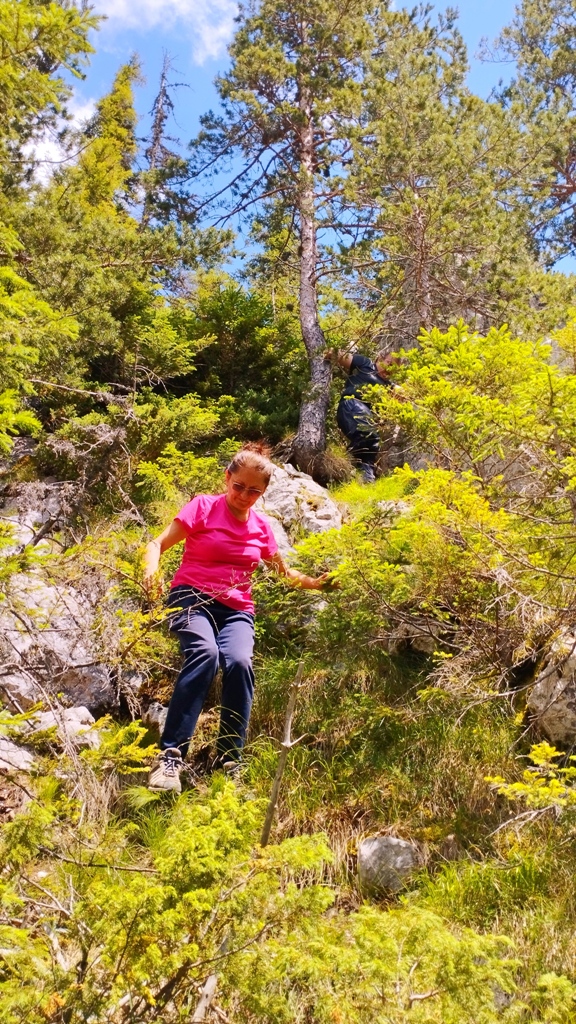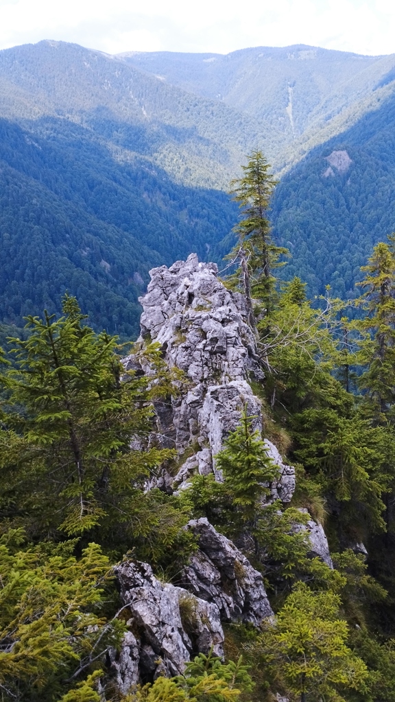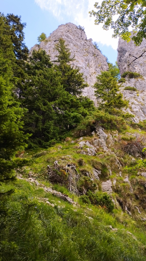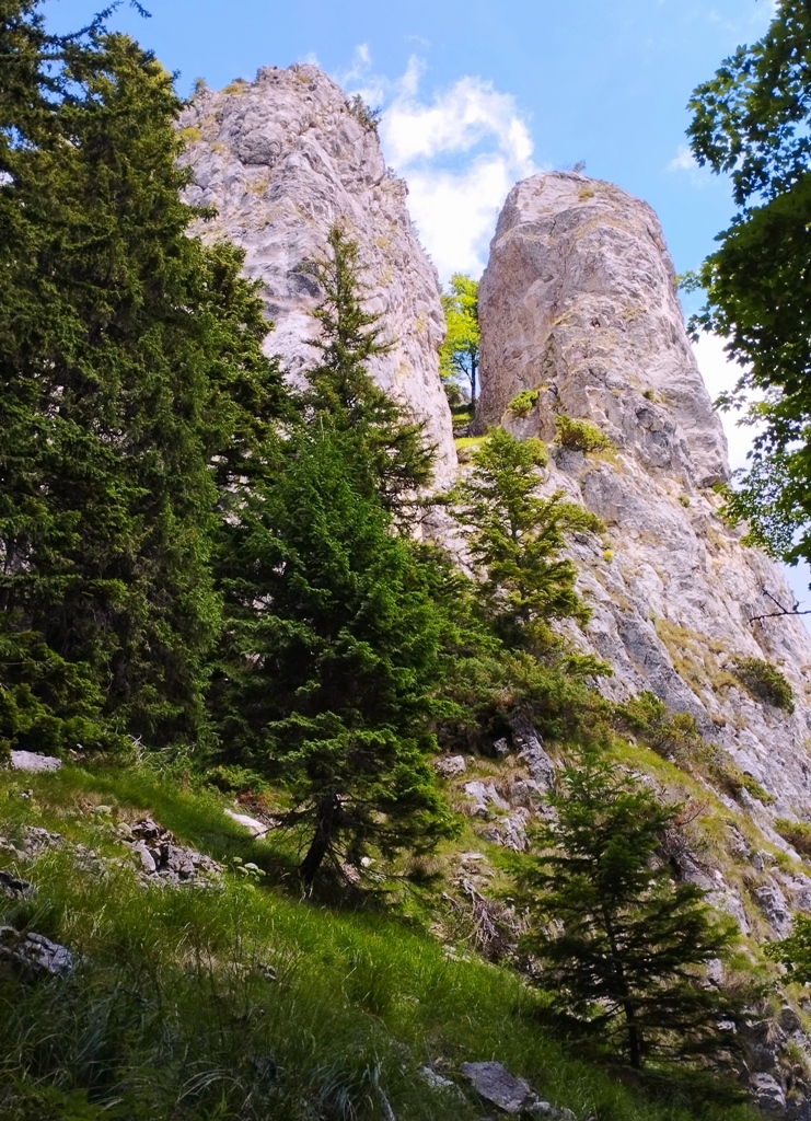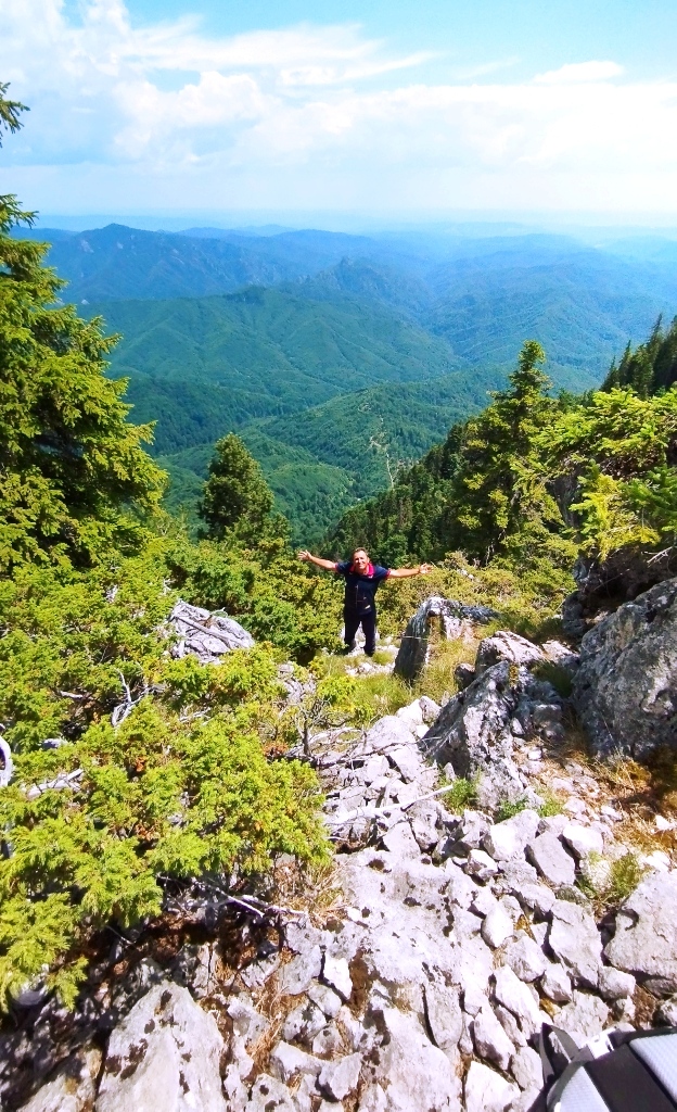Și, chiar ne-am cățărat puțin și pe hornuri până să găsim traseul cel bun, poteca reală este pe la baza vârfului spre stânga, apoi urcare accentuată până sus unde te întâmpină trei vârfuri, pe două dintre ele le-am abordat, pe al treilea l-am păstrat pentru altădată că e bine să mai lași ceva și pentru data viitoare.