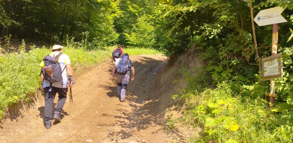 Așadar, într-o frumoasă sâmbătă de vară, noi cei trei supranumiți capra neagră, acvila de munte și ursul carpatin, împreună cu Georgeta, care se pare că este singura ființă umană dintre noi, pornim în Masivul Buila-Vânturarița pe Valea Cheii, lăsăm mașina la umbră și alegem traseul marcat cu cruce albastră care duce spre Vârful Gera din Munții Căpățânii și pe care noi nu o să mergem decât vreo două ore.