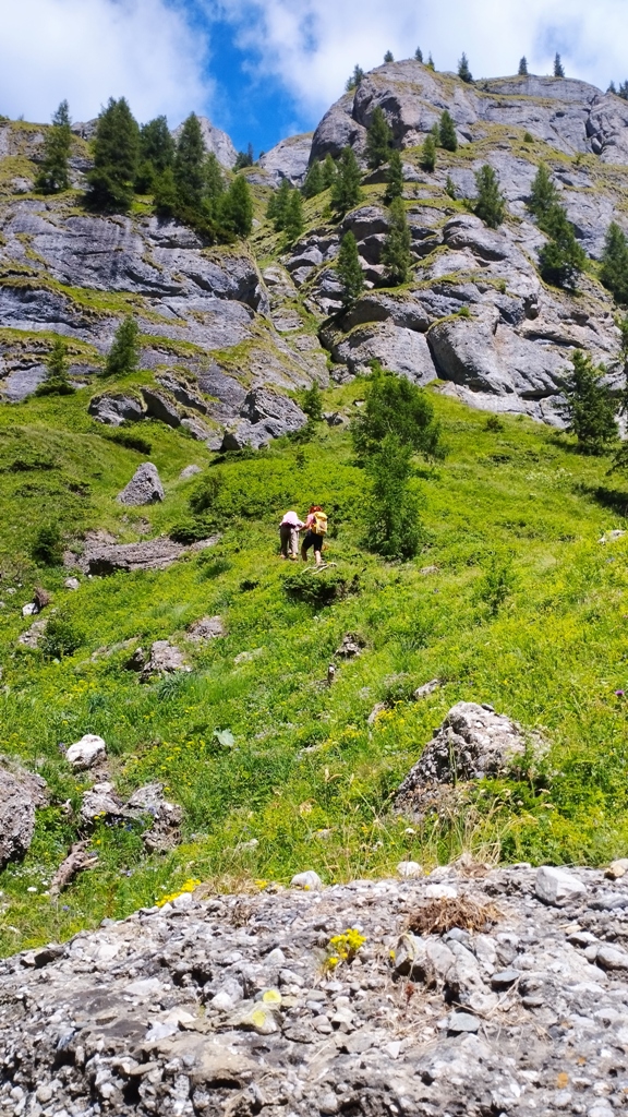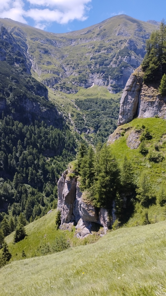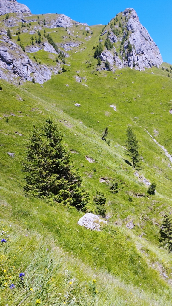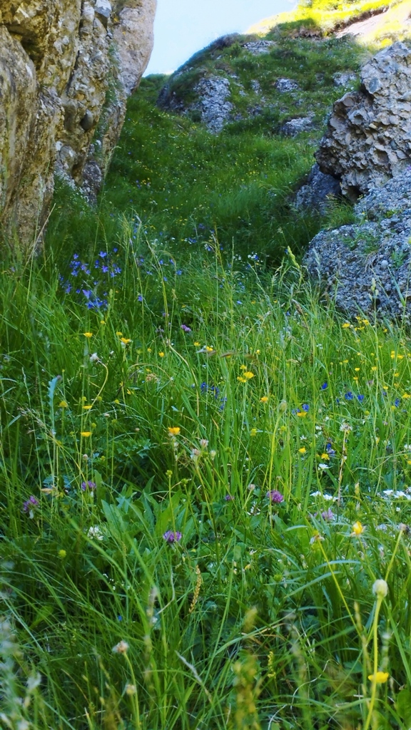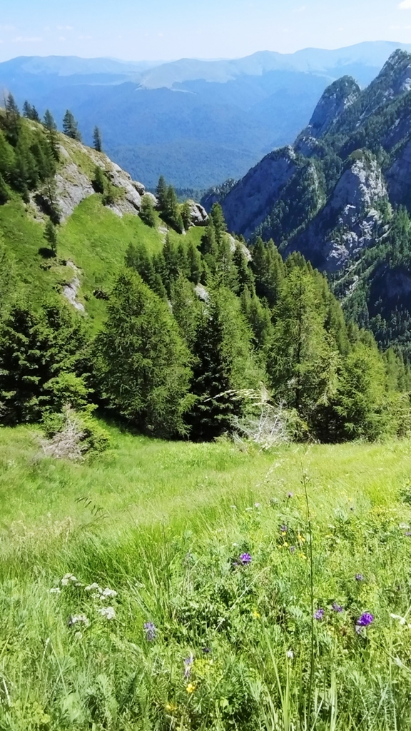 Și într-adevăr după ce am înaintat mult în amonte pe vale, odată ne-am abătut spre dreapta și am început să urcăm pe o potecuță mai mult înierbată, spre înălțimile unde caprele negre zburdă în voie iar florile de colț își au sălașul. Și au fost chiar multe, și ieduți alergând și multe buchete de flori de colţ pe lângă atâția și atâția fluturași. Și un izvoraș cu apă binefăcătoare și multe, multe peisaje și belvederi amețitoare.
