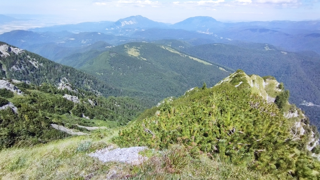 Valea Prahovei cu staţiunile sale la picioarele tale, Ciucaşul, Baiului, Piatra Mare, Grohotiș și alte masive din Orientali în depărtare, mai spre stânga Postăvaru și Măgura Codlei, mai încolo Făgărașul și Piatra Craiului și câte și mai câte care se mai văd în zare.