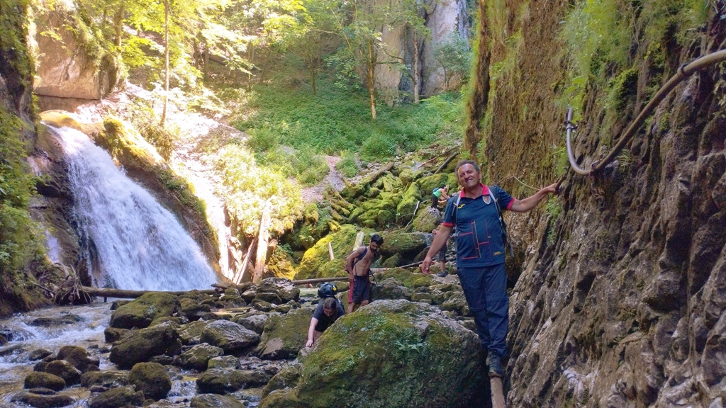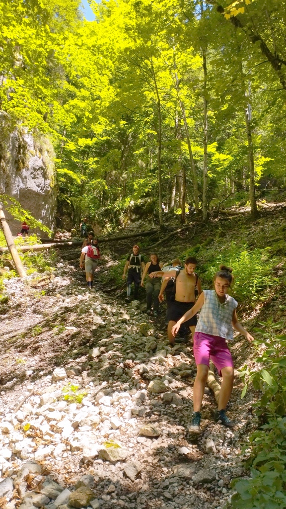 Acum, am pornit împreună cu Ana, Dani, Casi și Bianca, bunii mei prieteni cercetași arădeni, din Poiana Glăvoi, pe lângă Cetățile Ponorului și fabuloasele puncte de belvedere, până la Cascada Evantai, apoi prin spectaculoasele chei, agățați de cabluri sau alte elemente ajutătoare, pe stânci sau prin apă până când am ajuns în drumul județean, de unde ne-am întors prin Poiana Florilor, Ghețarul Focul Viu, înapoi în Poiana Glăvoi.