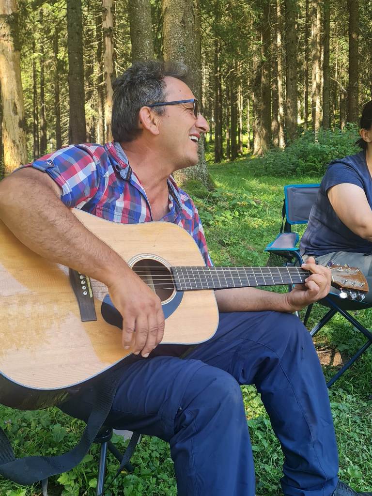 Trebuie să recunosc că tare extenuantă, mi s-a mai părut urcarea de la întoarcere, și nu numai mie, dar și celorlalți li s-a părut tare greu, dar răsplata de final a fost mare, când ajungând la terasă ne-am înfruntat cu lăcomie din nenumăratele bunătăți. Și mici și vârsli și altele, și multă muzică de munte mai ales că s-a întâmplat să fie organizat și ,,Festivalul Radu Mărieș”, personal nu l-am cunoscut pe domn profesor de origine din Oradea, dar am auzit doar cuvinte de laudă despre dânsul, și astfel multi chitaristi şi-au etalat măiestria în fața unui numeros public.
